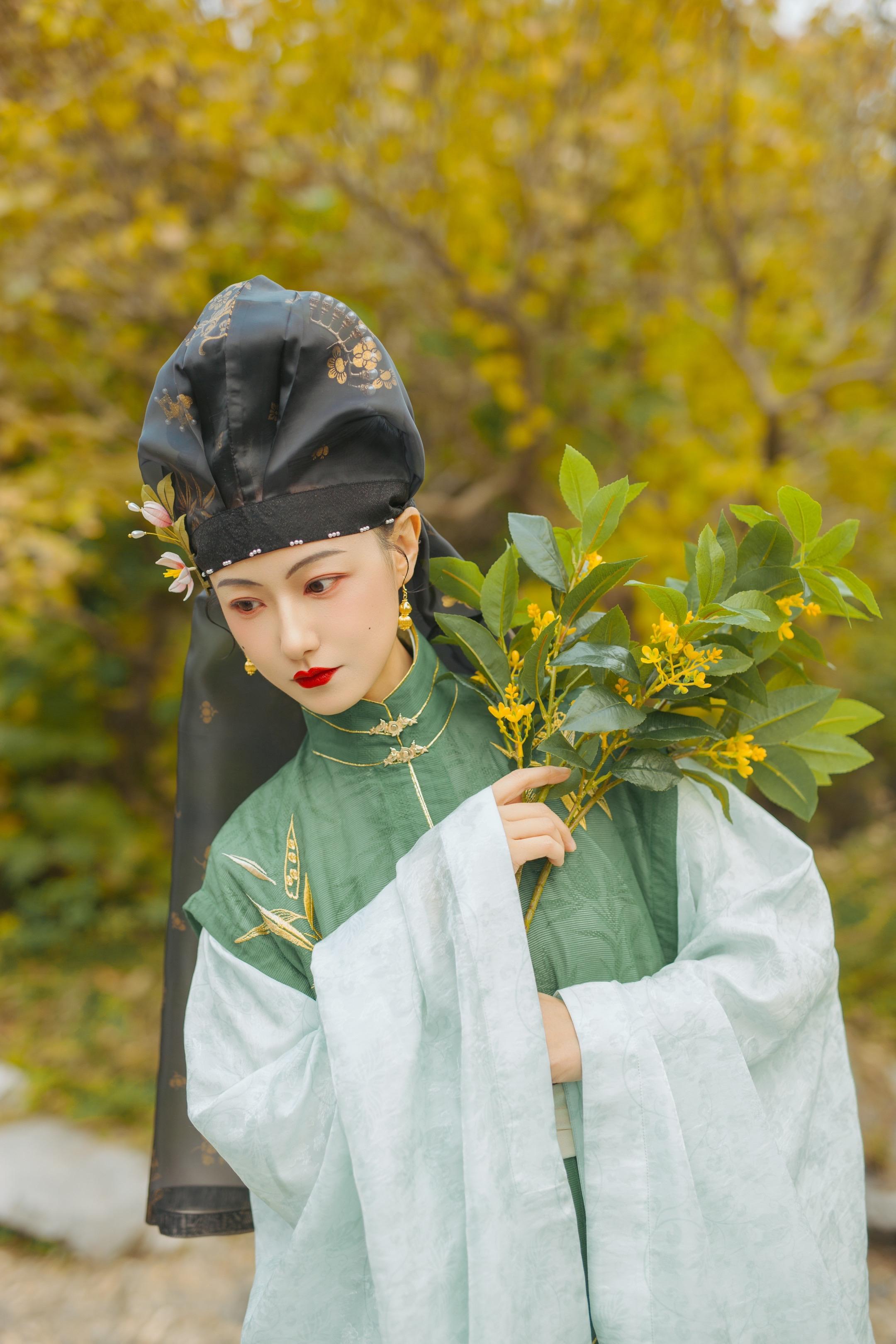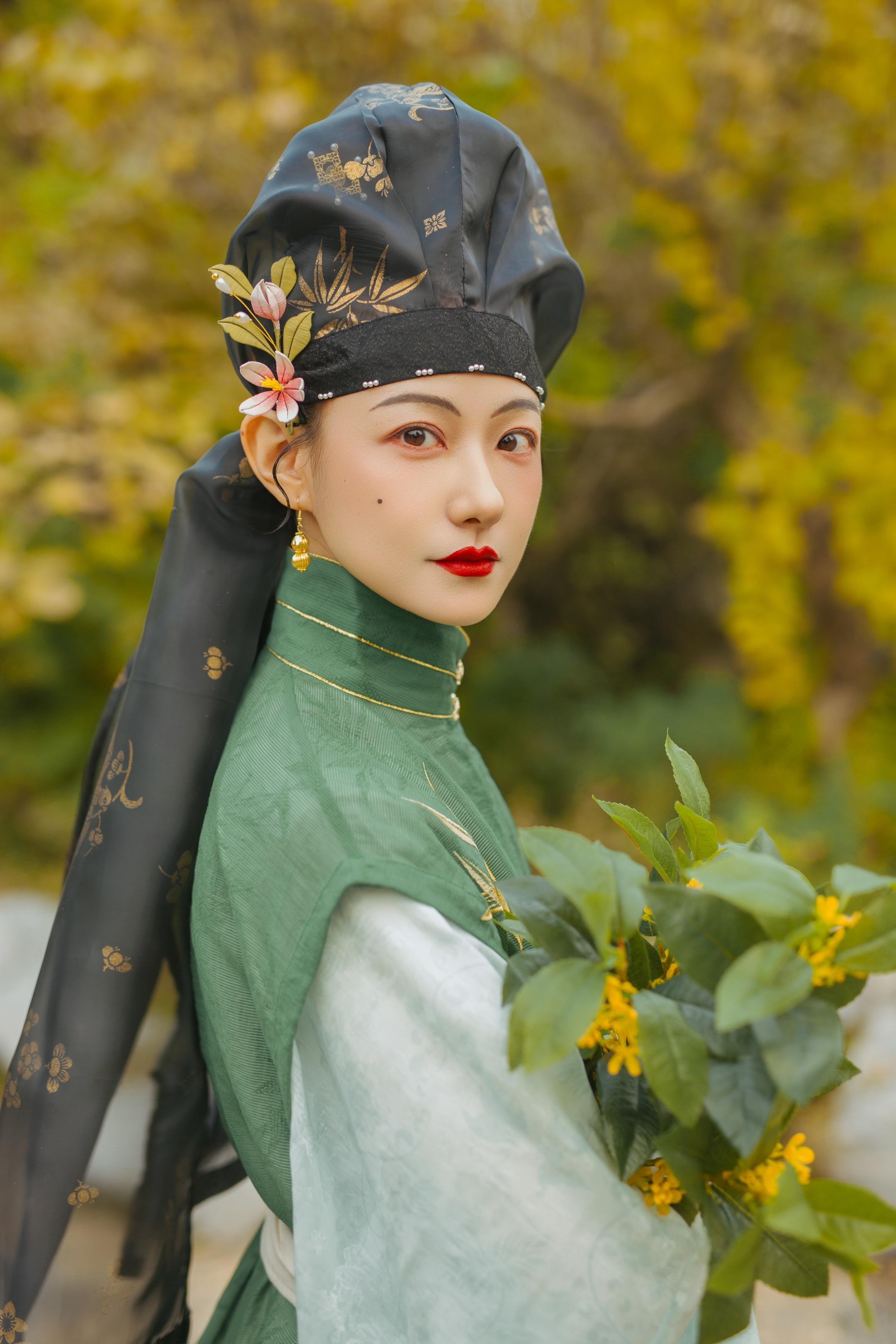✨明代幅巾的面料主要有棉、麻、丝等,普通百姓多用葛布,现有资料中幅巾多为黑色,彩色幅巾历史上是否存在尚不明确。明末时期,随着女扮男装风尚的兴起,女性也开始流行佩戴,幅巾突破性别界限,成为了当时女性的时尚新选择。