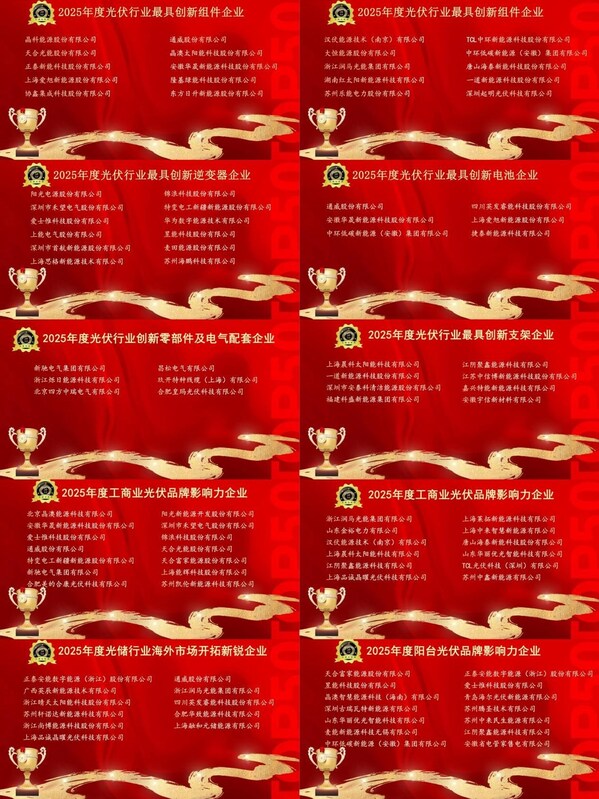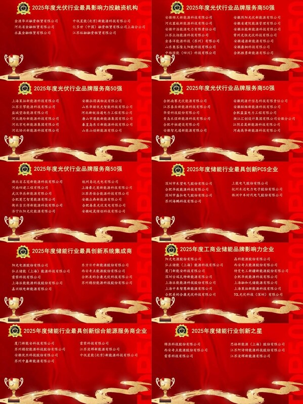 本届盛会汇聚了光储领域的著名专家学者、领军企业代表及行业精英,共同见证"2025年度光伏行业最具创新组件企业"、"2025年度光伏行业最具创新逆变器企业"、"2025年度光伏行业最具创新电池企业"、"2025年度光储行业海外市场开拓新锐企业"、"2025年度阳台光伏品牌影响力企业"、"2025年度储能行业最具创新PCS企业"、"2025年度储能行业最具创新系统集成商"、"2025年度工商业储能品牌影响力企业"等重磅奖项的揭晓。