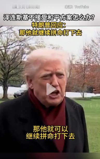 若泽连斯基拒绝美方和平计划?特朗普:他可以和俄罗斯打个痛快 11月22日这天,俄乌冲突的和平进程又添了层复杂色彩,特朗普把美国和乌克兰的分歧摆到了台面上——如果泽连斯基不接受美方力推的28点和平计划,那乌克兰就自己接着跟俄罗斯“玩命抵抗”。 有意思的是,几乎在同一时间,乌克兰总统办公室就发了通报,说乌方代表团会去瑞士,参加新一轮关于这个“和平计划”的谈判。 这个让双方态度微妙的28点计划,最近刚被外媒披露核心内容,说白了,就是让乌克兰在领土上做重大让步,克里米亚和乌东的卢甘斯克、顿涅茨,要被“事实上承认”是俄罗斯领土,赫尔松和扎波罗热则按现在的战场接触线冻结控制区。 作为交换,美国会牵头用冻结的俄罗斯资产搞乌克兰重建,还会分阶段解除对俄制裁。 特朗普的表态看着是给选择,实则是施压,美国早就不想在这场冲突里砸钱了,从计划里让欧洲出维和部队、自己只出钱就能看出来,它想尽快抽身。 但泽连斯基这边根本退不了,之前就明确说过,碰领土主权的和平计划都是“延长冲突”,乌克兰人打了这么久,要是连国土都保不住,泽连斯基的执政基础都要动摇。 乌方同意去瑞士谈判,也不是松了口,更像是缓兵之计,它得借着谈判争取时间,也想看看欧洲盟友的态度——毕竟计划里提的欧洲维和部队,还没哪个国家敢拍板。 而且美国这计划是美俄私下草拟的,乌克兰和欧洲都没参与,这种“越俎代庖”本身就让乌方不满。 说到底,这场博弈的关键还是领土,特朗普只算经济账,却没考虑乌克兰的生存根本。 乌方去谈判是必然,但想让它签字认领土损失,可能性极低,接下来就看瑞士的谈判桌上,欧洲会不会帮乌克兰说话,毕竟真按美国的计划来,欧洲的安全格局也要被重新改写。 以上都是个人观点,对此您有什么不同的看法,可以在评论区留言讨论!!!