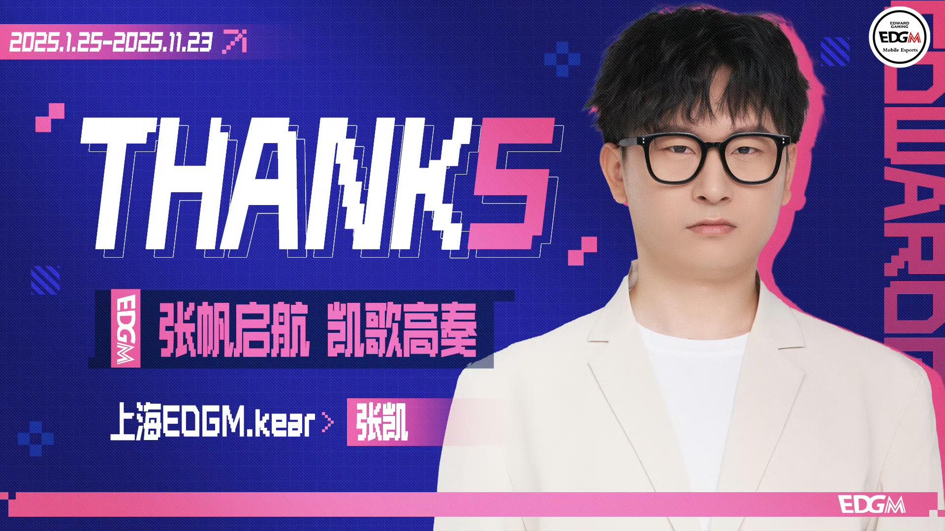 在充分尊重个人意愿的前提下,经过充分沟通与友好协商,原EDG电子竞技俱乐部王者荣耀分部赛训监督上海EDGM.Kear(张凯)即日起不再任教于上海EDG.M王者荣耀分部,奔赴下一段旅程。