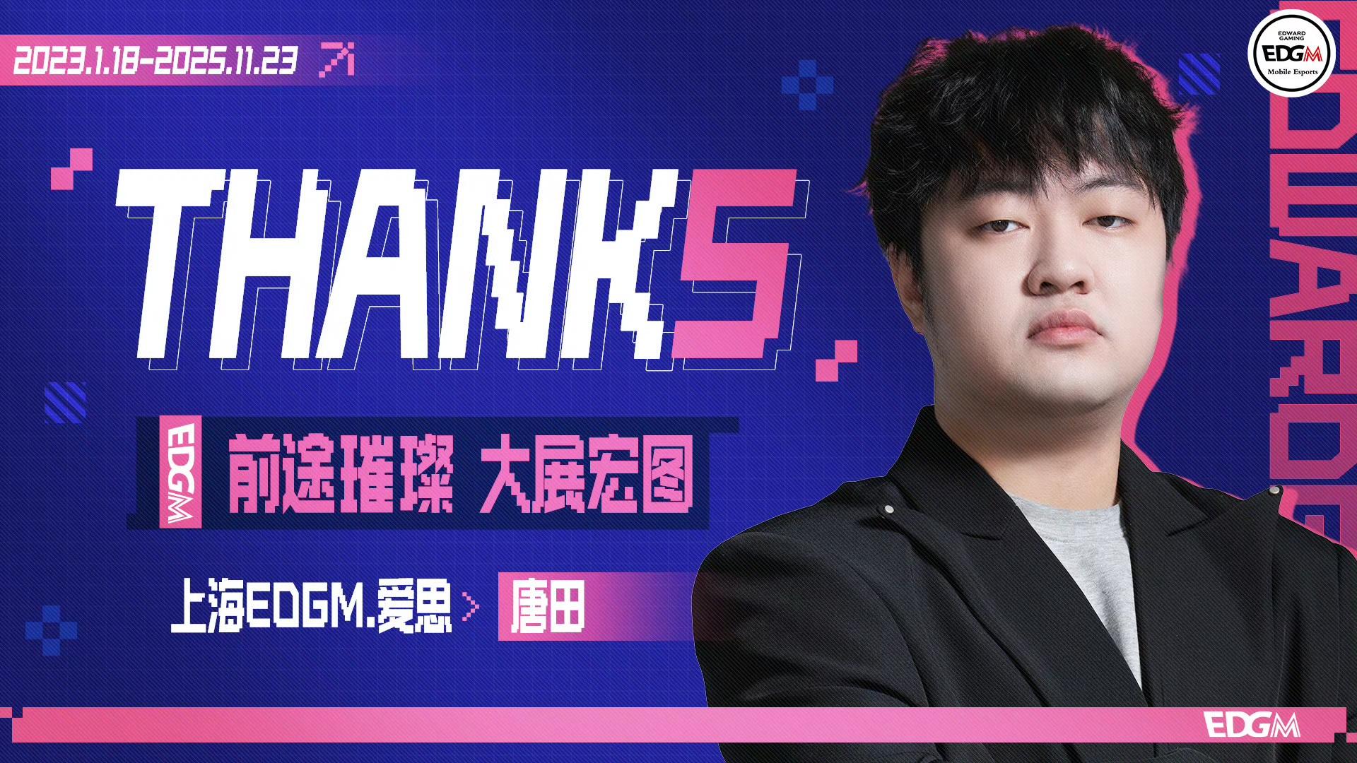 在充分尊重个人意愿的前提下,经过充分沟通与友好协商,原EDG电子竞技俱乐部王者荣耀分部教练上海EDGM.爱思(唐田)即日起不再任教于上海EDG.M王者荣耀分部。