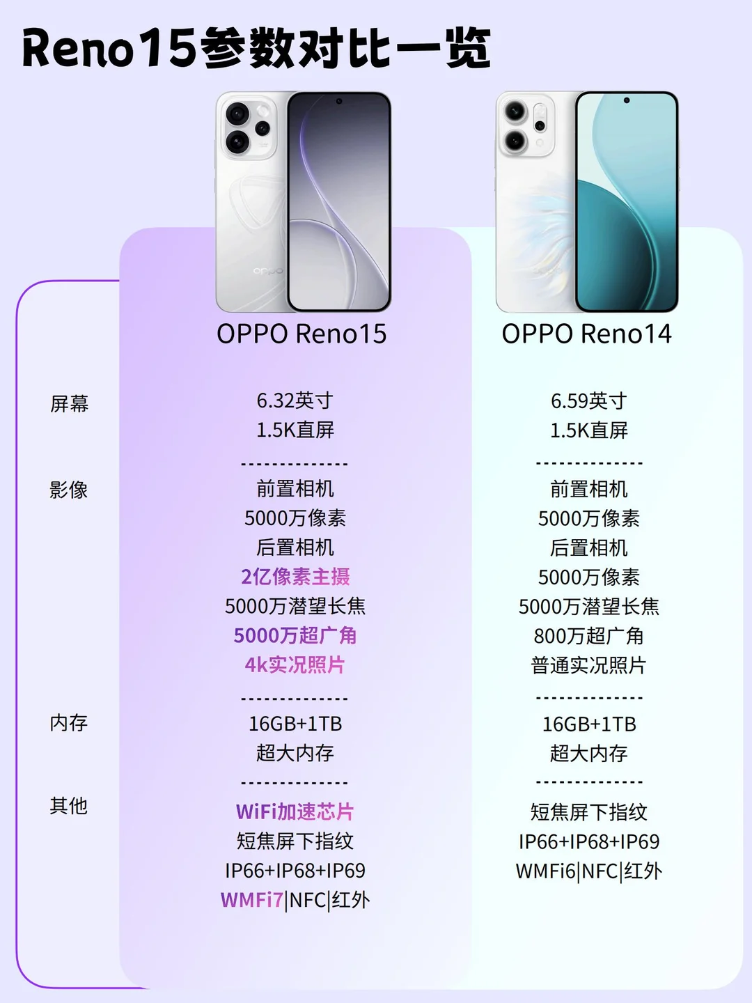 宝子们!OPPO Reno15终于来了~ 作为Reno14的老用户,这次新机一发布就火速对比了一波,升级点真的多到离谱!忍不住和你们分享~