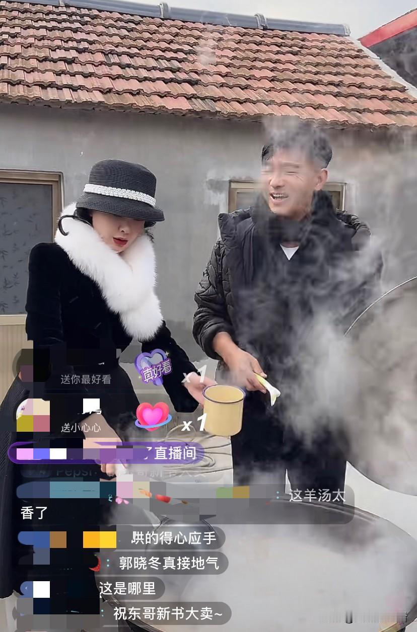 郭晓东和程莉莎两口子直播,人数达到五万人,郭晓东用大铁锅熬的羊汤,是从早上开始熬到下午。 程莉莎用瓷缸子盛上直接喝起来,他们俩手里拿着大葱,吃着大饼,这是山东的大锅饼,很有嚼劲。 程莉莎还是以往的爱撒娇,在农村打扮赫本风。 郭晓东拿上大锅饼,掰了一块吃起来,程莉莎就在一旁不高兴了,郭晓东立马感觉不对,往她嘴里塞,她说我不吃了,才想起我,这撒娇的本事别人真模仿不来。 郭晓东属于实干型的,在一旁准备午饭,时不时过来说两句,还得过去看锅,因为他正在给大家熬羊汤。 他们今天的直播,人数出奇的多,当时达到了五万人,果然是接地气大家更爱看,更何况是明星。