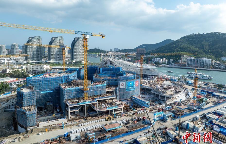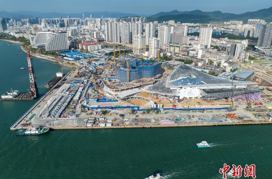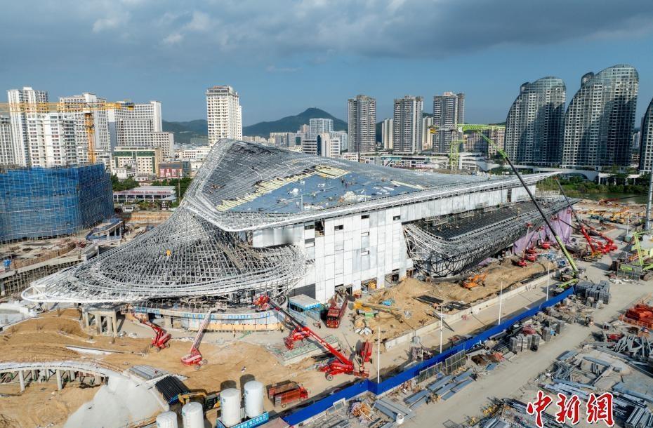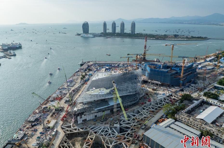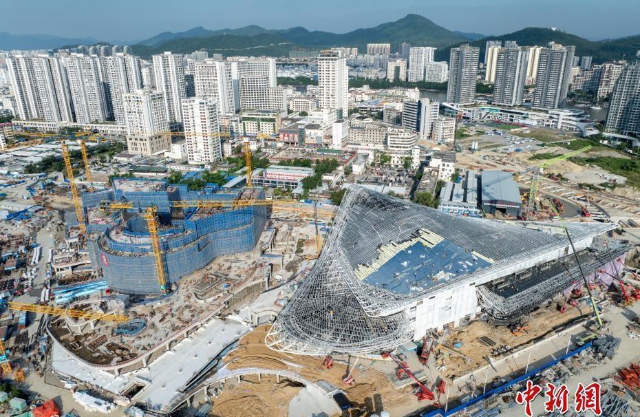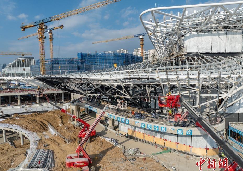 【海南三亚:自贸港重点项目建设加快推进】近日,位于三亚中央商务区的中国海南国际文物艺术品交易中心项目,已完成屋面钢结构合拢,工程预计2026年上半年竣工。该项目是海南省重点建设项目,总建筑面积7.5万平方米,涵盖大型临时展览场地、文物商店、拍卖交易区及多功能厅等,集综合办公、展示、会议、接待于一体,是三亚构建文化艺术全产业链的核心平台。竣工后将成为全国首个集文物展销、艺术品拍卖与国际文化交流功能于一体的滨海文化综合体。(无人机照片)(中新社记者 骆云飞 摄)海南自贸港封关进行时