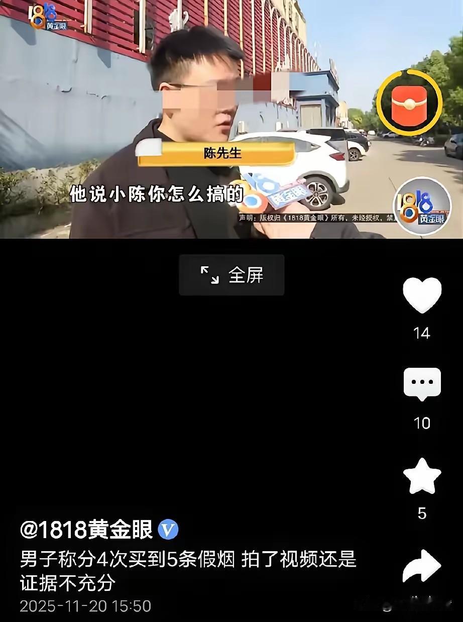 浙江宁波,男子买到假利群香烟后,分3次悄悄到该烟店又买了4条,拿去烟草局鉴定。 不料,5条利群全部是假货,男子气坏了,拿着证据和买烟录像甩到老板面前,要求他给说法。 没想到,老板反咬一口,坚决说那不是他的烟,还扬言男子是职业打假人,要去告发他,男子用了一招,直接让商店老板傻眼。 11月中旬,那天下班后领导让他去买烟。陈先生跑隔壁店买了条外加一包,花了450元。谁想到第二天领导用这个烟被人当面退了回来,气得差点开喷。后来才知道烟有问题,盒子编码都不对。 陈先生气不过,悄悄又买了四条,分三次去店里。最后一次特意带朋友当证人,全程拍视频。烟草局鉴定出五条全假,他觉得这证据铁定了。结果去店里讨说法时,老板死活不认账,说烟不是他卖的,还威胁要告他敲诈。 店里现在卖的烟全没问题,执法人员检查了也没发现假货。烟草公司说这老板去年就有过卖假记录,但这次证据不够,没法处理。按法律商家该赔钱,可老板一直抵赖,说陈先生可能在车上掉了包。 陈先生说他拍了视频,还特别看了编码,怎么还会有假?店家那边就是不认。现在烟草局在重点监控这家店,暂时没结果。 他说自己只是想证明清白,没想到越弄越复杂。这种事普通人维权太难了,商家不承认根本没办法。 这事现在还在查,但看起来短时间内解决不了。陈先生说下次买东西得更仔细,不然再遇到这种事又得折腾。现在大家买烟都要多留心,别遇到这种黑心店。