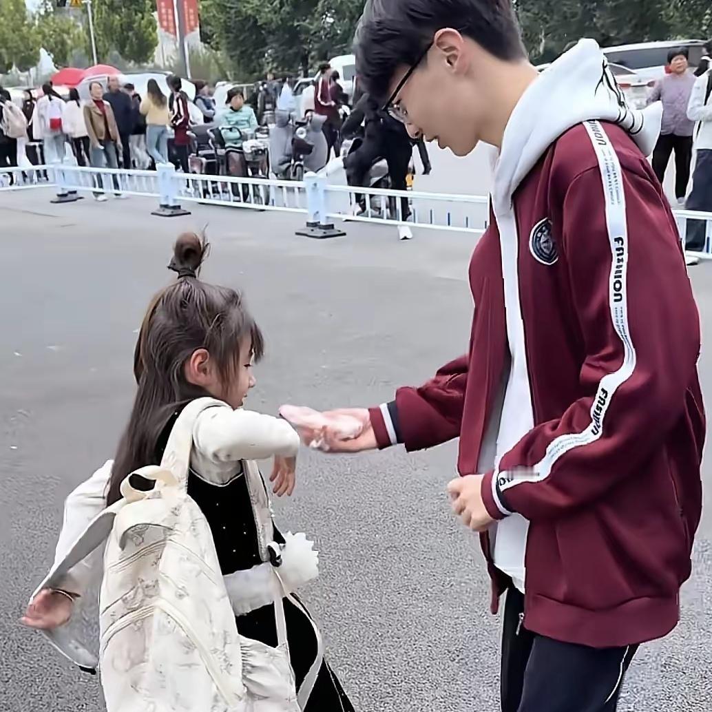 你能想象吗?仅仅一声“哥”,就能开启一段超甜的兄妹日常,这背后到底藏着多少温馨瞬间? 妹妹乖乖坐在石堆上,眼睛紧紧盯着校门口,就等哥哥放学。一听到那声脆生生的“哥”,妹妹像小火箭一样冲到哥哥怀里,还麻溜地取下哥哥书包要自己背。这小模样,是要跟哥哥“抢活”干呀,哥哥会答应吗? 哥哥哪能让妹妹累着,一把拿过书包,顺势把妹妹背在背上。接着,他从兜里掏出妹妹爱吃的零食递过去。妹妹吃着零食,靠在哥哥背上,心里肯定像吃了糖一样甜。这画面,是不是超有爱? 父母在一旁看着这温馨场景,脸上满是幸福。这样有爱的兄妹俩,有没有让你想起自己的兄弟姐妹?快来评论区说说,你和兄弟姐妹间有哪些超甜的瞬间!
