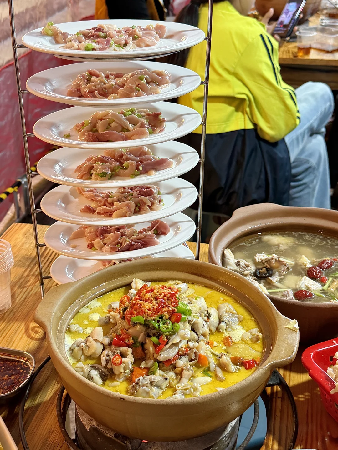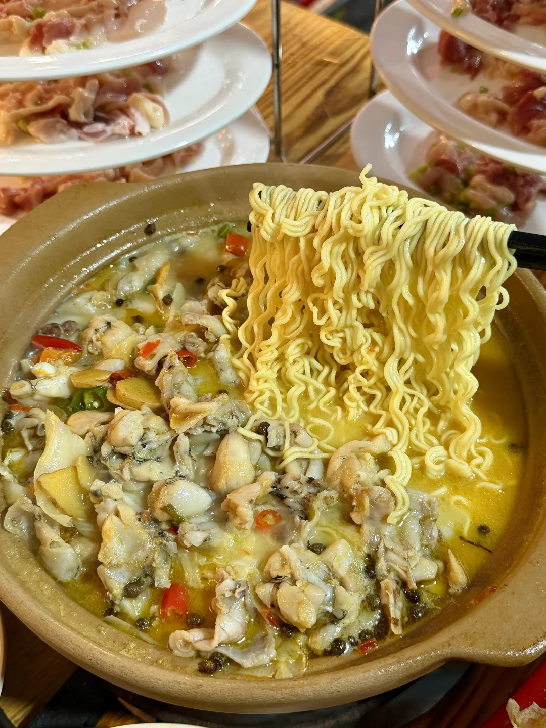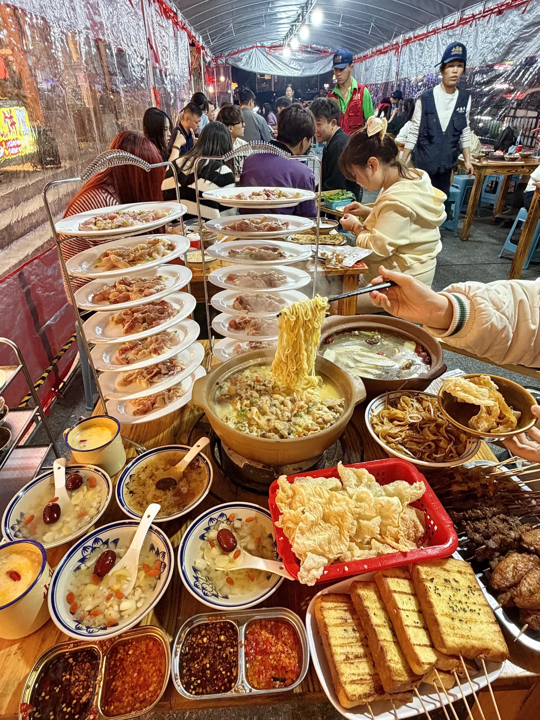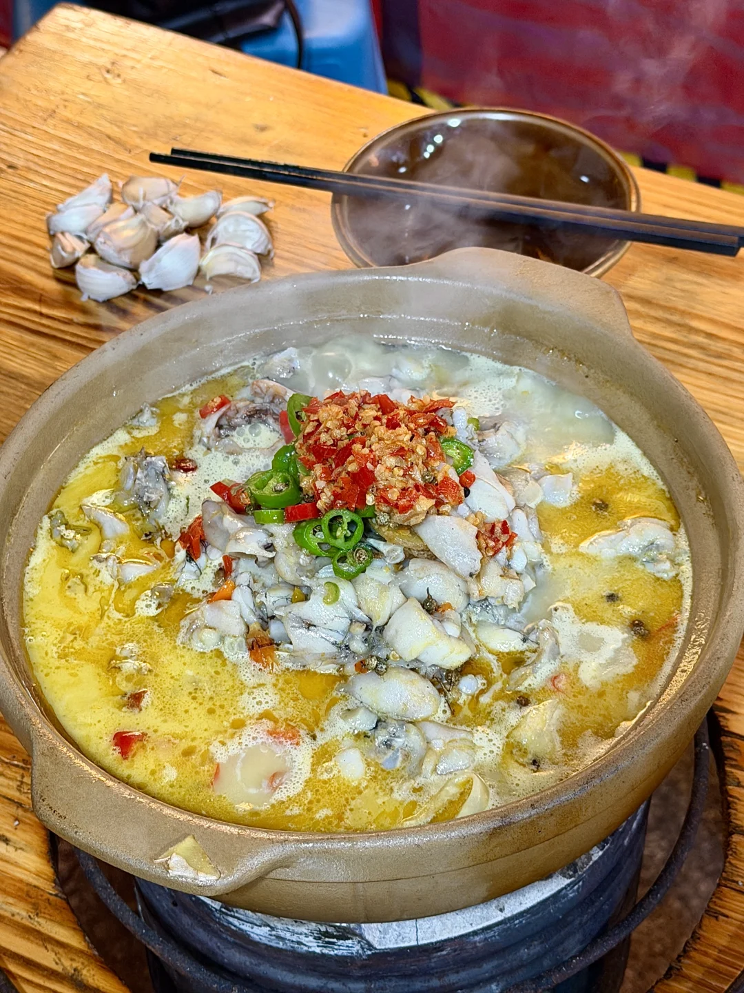 在衡阳私心不想公开的店啊啊😭这个月已3刷了!不愧是本地人都排队去吃的店!虽然没啥环境,但味道真没得说…… 跳跳蛙火锅煮的很入味!牛蛙肉嫩又大块,加泡面进去!也太好吃了🥹还有炒粉、烧烤、店里手工做的五果汤吃完真的香迷糊去!!(定位到:小卫哥)