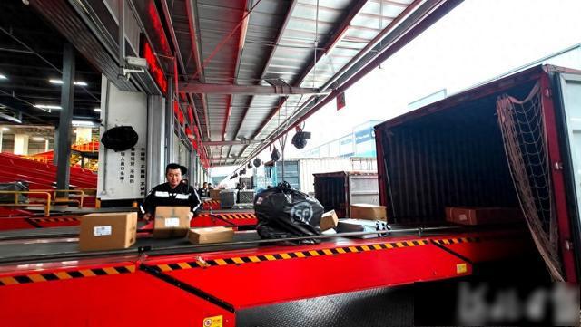 11月10日,廊坊顺丰速运有限公司转运中心内,工人们正在准备装车。河北日报记者刘英摄
