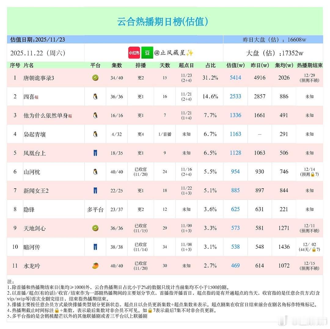 11月21日云合播放占比唐朝诡事录之长安29.6%四喜17.2%可怕,占比17