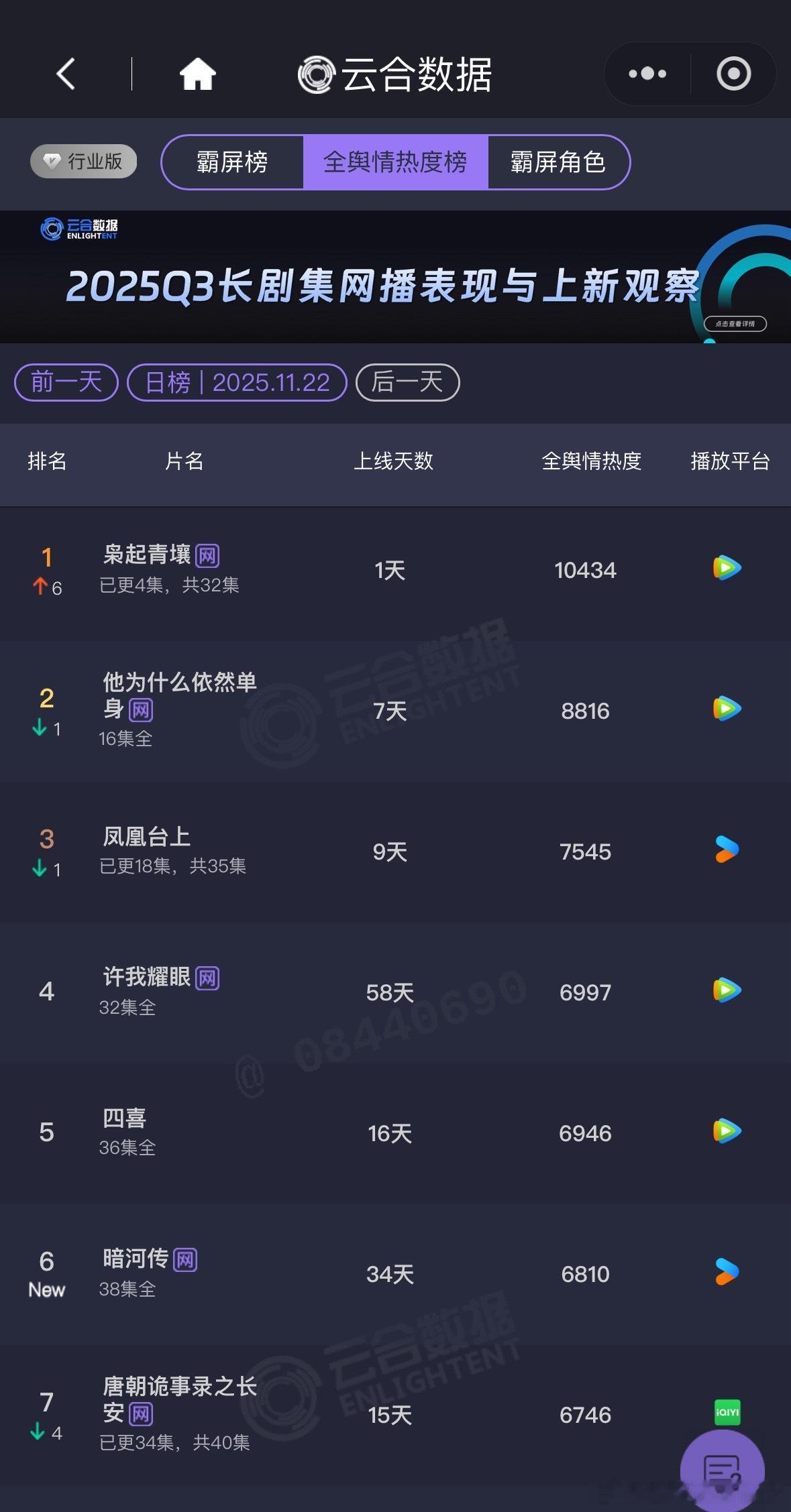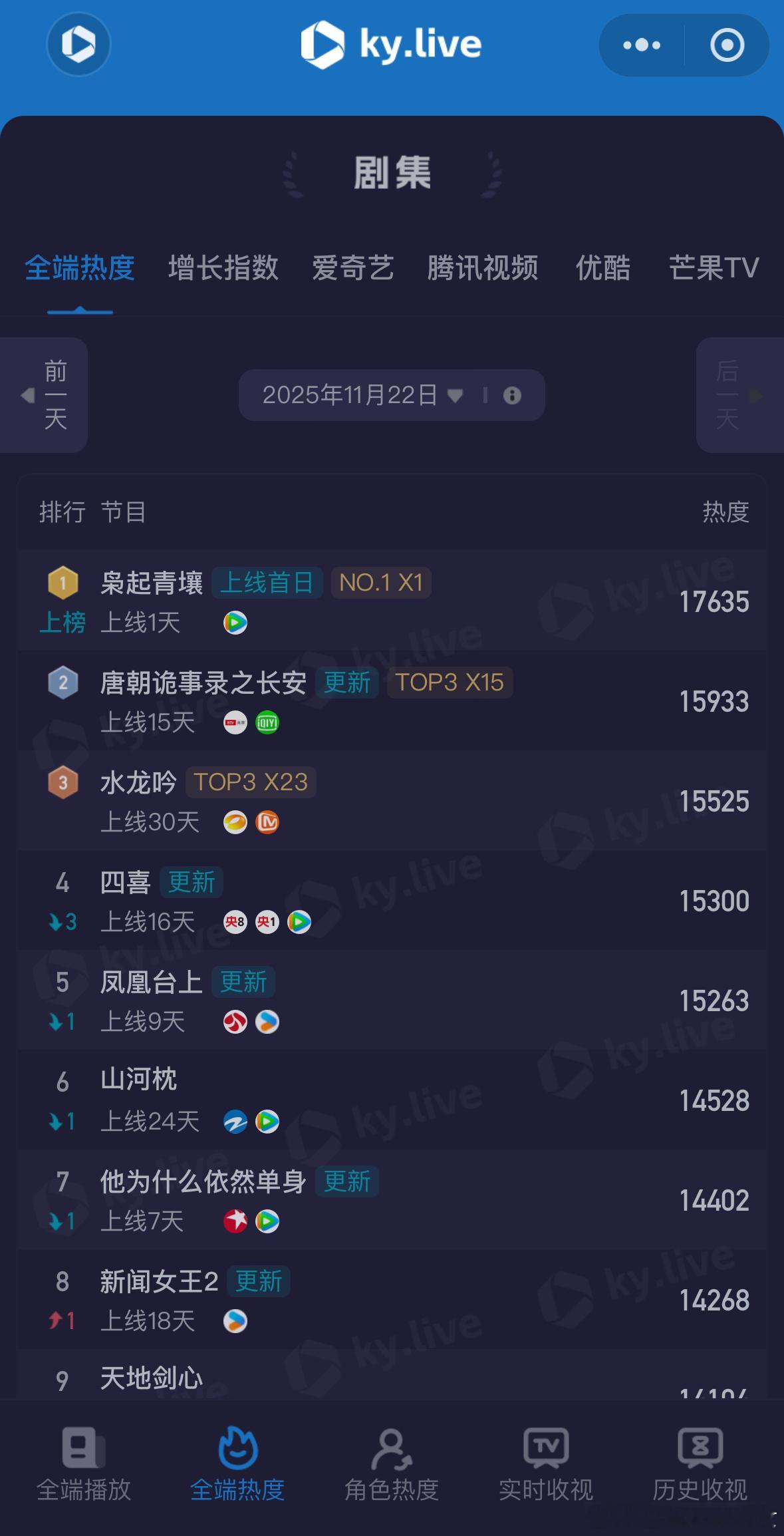 枭起青壤首日云合高开,晚上六点开播,vip更新才3集,剧集热度和迪丽热巴聂九罗角色横扫各种榜单均第一,站内热度腾讯今年18点档播出的第二,首日拉新周榜第7,枭起青壤悬疑志怪不是大众受众的题材,开播无固屏,如此全平台高开的首日成绩,体现迪丽热巴强大的号召力和观众盘。枭起青壤首播下沉平台都在夸,剧情也很好看,值得推荐