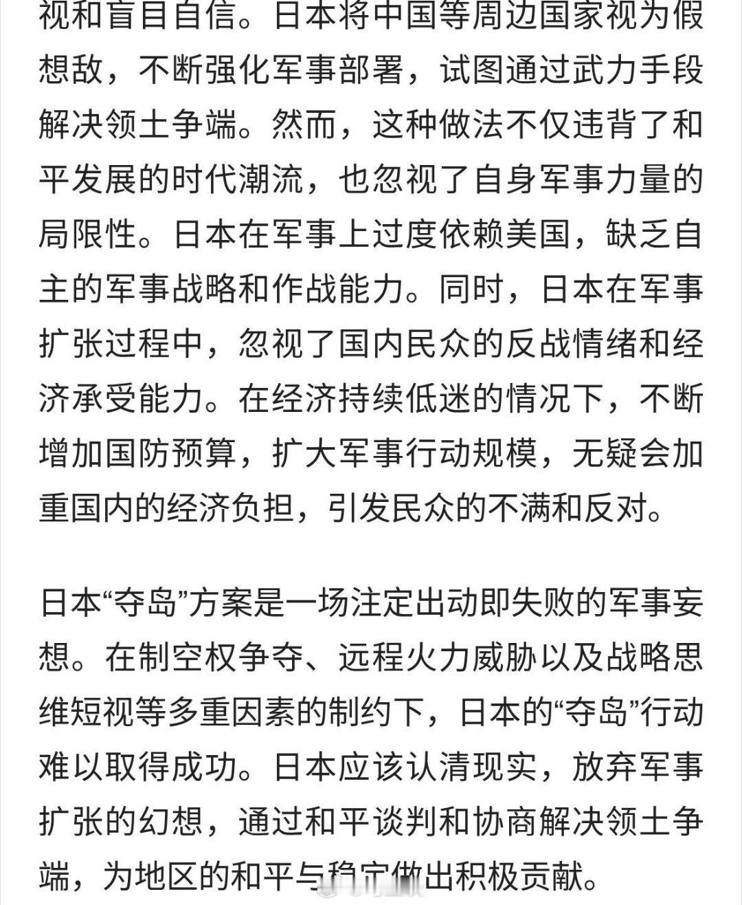 日本是预谋已定,夺岛方案几年前就已经制定了。高市早苗可不是口嗨,而是提前暴露了野心。要想让日本重新冷静下来,恐怕舆论压力是毫无作用的。只有不惜一战的决心,而且要稳、准、狠的战斗。把日本打痛了,日本才能老实几十年。不然日本只要抓住机会,必会兴风作浪,这一点不得不妨!