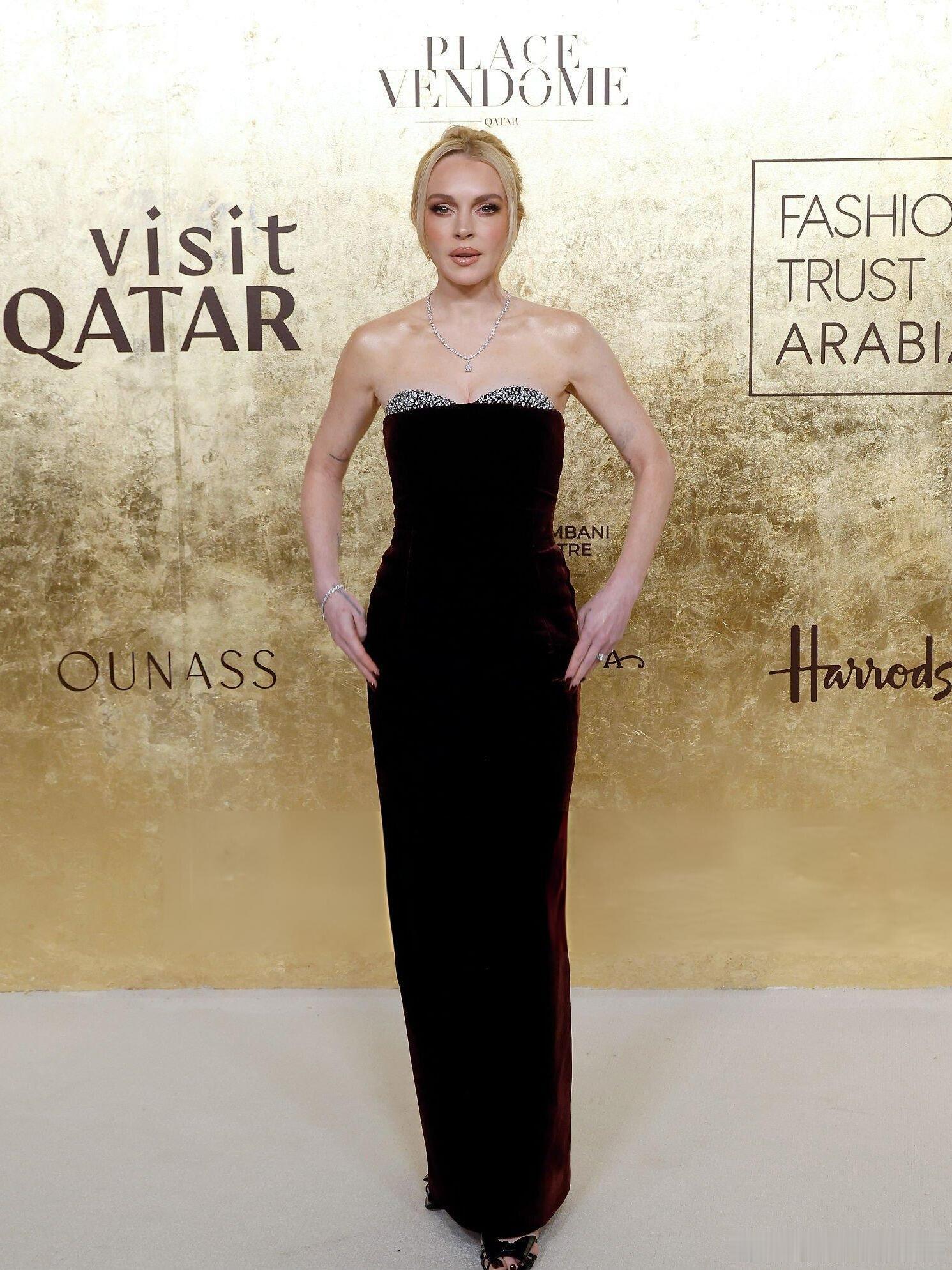 林赛·罗韩身穿THE NEW ARRIVALS黑色礼服亮相红毯,胸口的bling