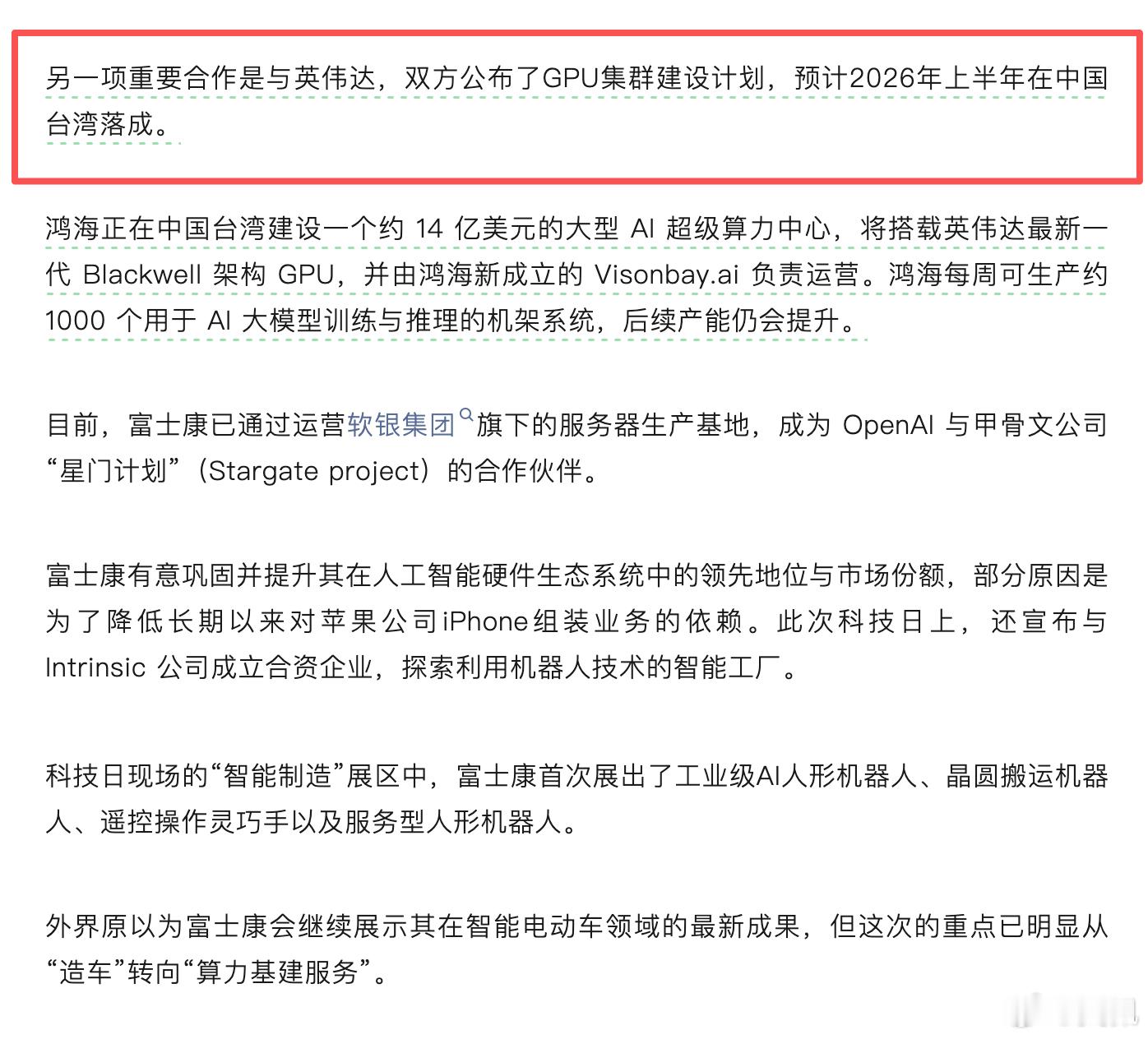 富士康放弃造车,转向算力基建服务。好可惜,富士康那车我还看过。