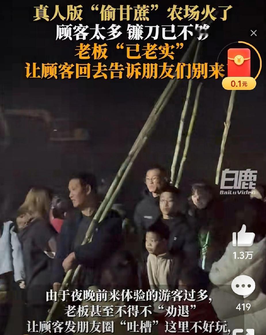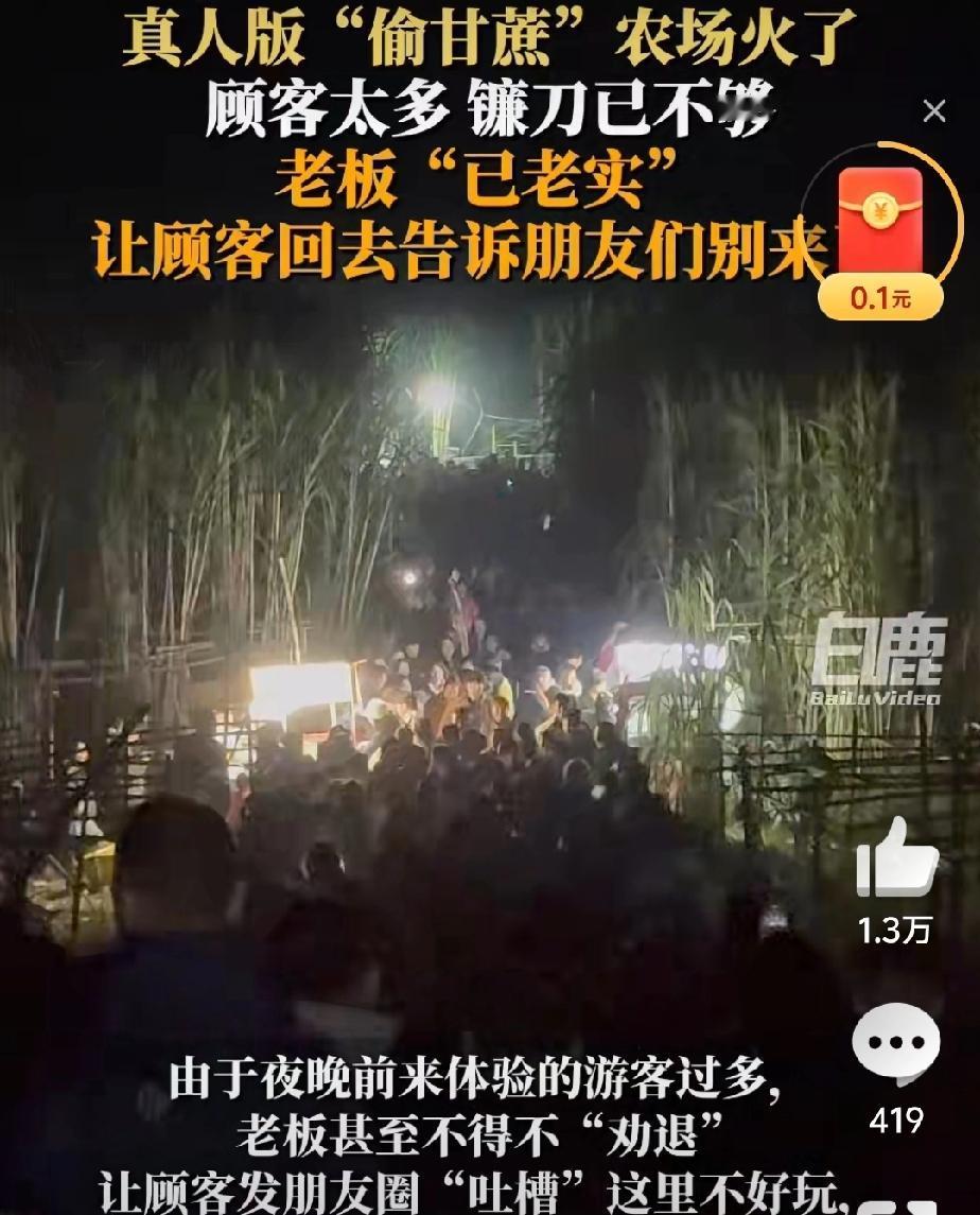 脑瓜真是好东西!做生意不怕没钱挣,就怕没有脑子。 看看甘蔗农场大叔的“真人偷甘蔗”活动,一开始,就火的一塌糊涂。因为,晚上来体验的人太多,老板只好央求前来参与游戏者,发朋友圈告诉朋友‘这里不好玩’,让大家不要来了,人多的招架不住了。 原来,老板创新销售甘蔗,让附近的游客进田里自助偷甘蔗,为了增加游戏的趣味性,并设置NPC巡逻抓捕游客,不管被不被NPC抓住,每根甘蔗定价9.9元。 游戏后,老板还免费请吃烧烤,喝啤酒,没想到一下子来这么多人,招架不住了。谁做生意也不能赔本赚吆喝,何况老板一天就睡1、2个小时,再这么下去,真招架不住了。 于是,老板挂出了通告牌,明天开始,所有来参与“真人版偷甘蔗”的,需要收入场费每人2.99元。 收入场费,增加了收入,这也算是老板的生财之道。也可以起到控制人流的作用。因为,又是晚上,偷甘蔗的人太多,怕万一发生什么事,就不好了。 图片来自网络,侵删致歉!
