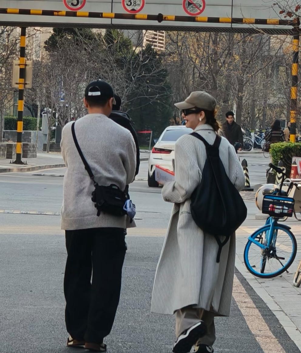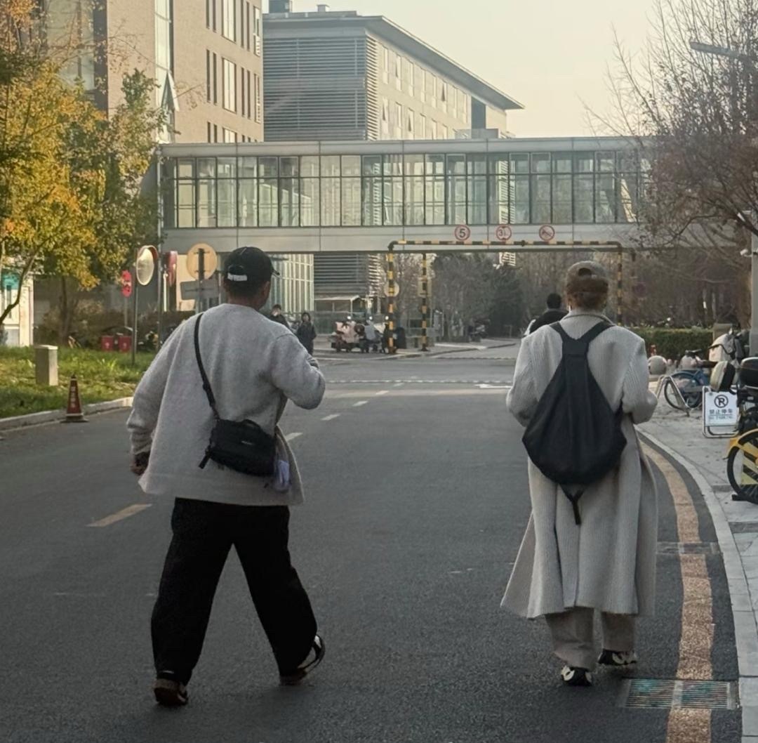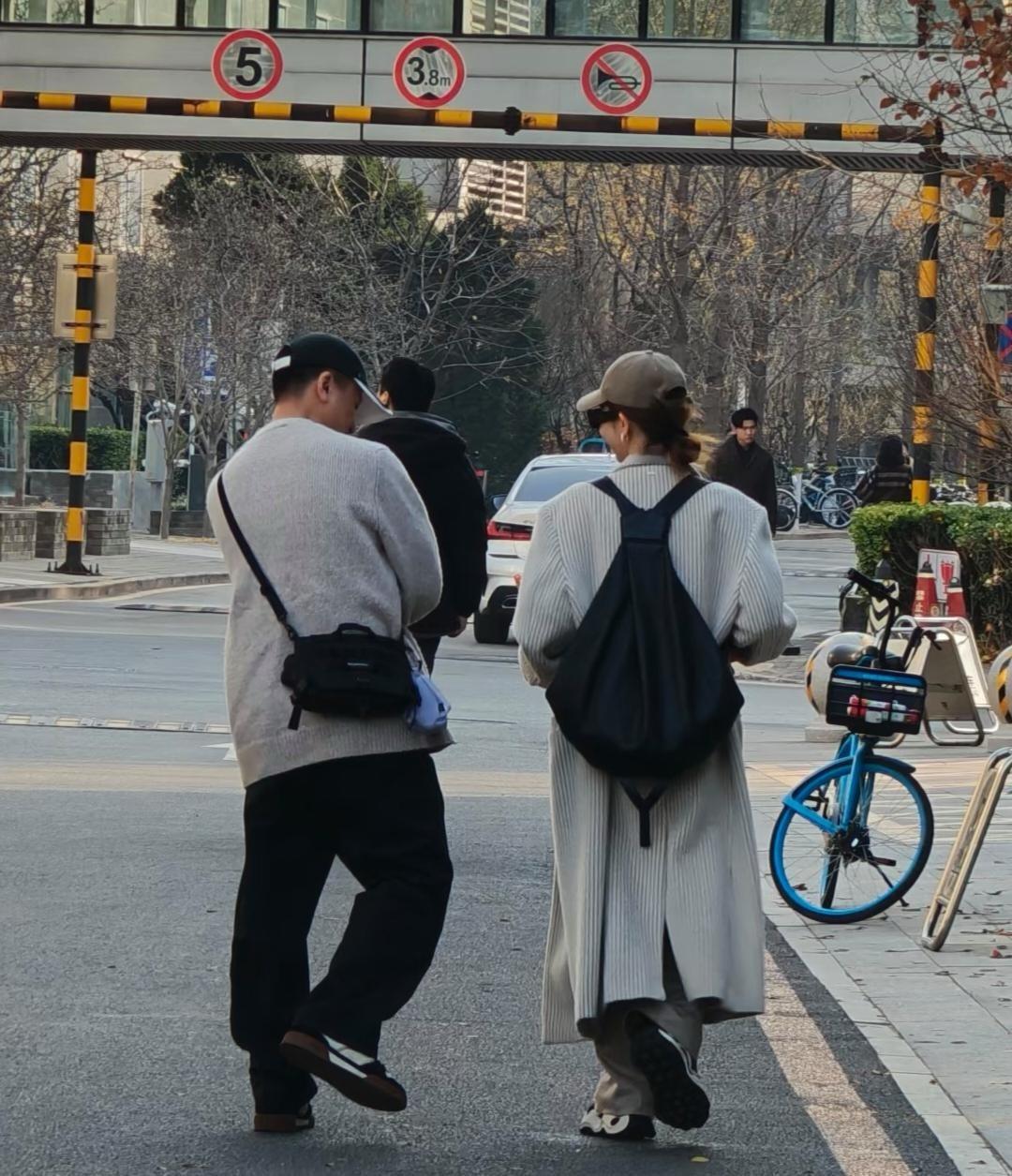 41岁戚薇在北京大学参加在读研究生考试,她穿着灰色大衣,身材看起来好瘦,外表挺年轻的。她和同学一边走路一边聊天,好有亲和力!