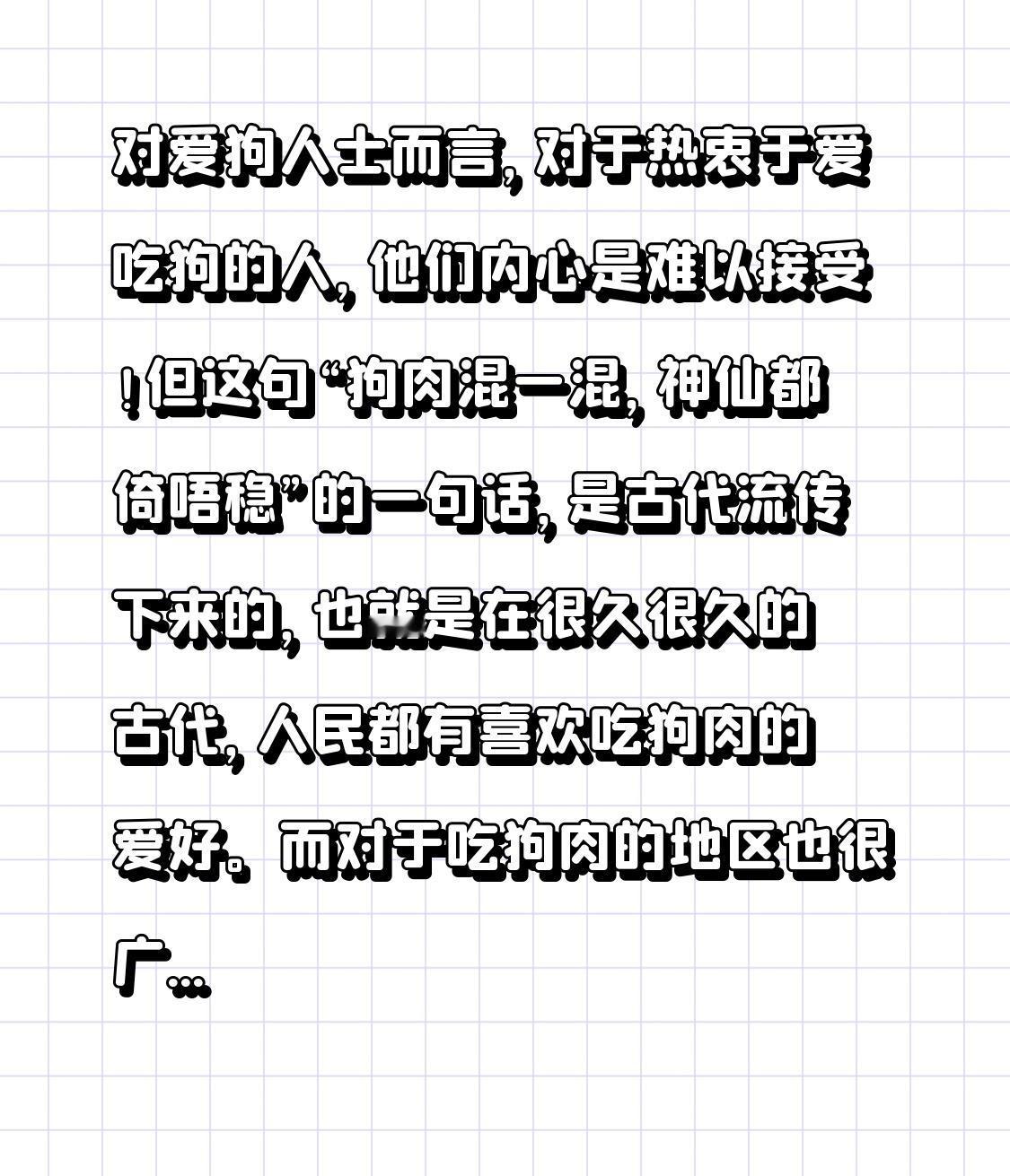 对爱狗人士来说, 他们内心很难接受热衷于吃狗肉的人。 但“狗肉滚三滚,神仙站不稳”这句话,是从古流传下来的,也就是说,在很久之前的古代,人们就有吃狗肉的喜好。 而且吃狗肉的地区颇为广泛,玉林隔壁的湛江、茂名、海南、北海、钦州那一片地方的人都爱吃狗肉。 不知全国还有哪些地方也爱吃狗肉呢!