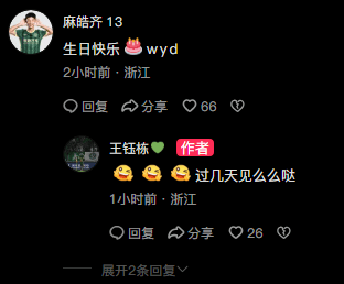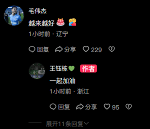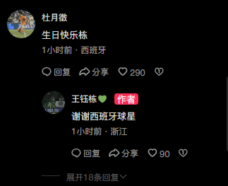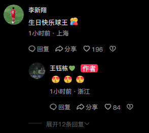 王钰栋自己也在个人社交媒体更新动态,庆祝自己的19岁生日,蒯纪闻、李新翔、赵博等多名俱乐部/各级国家队队友纷纷现身评论区祝贺。
