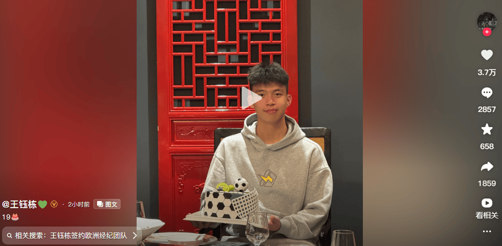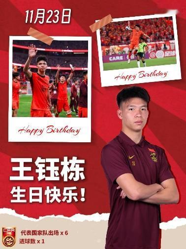 虎扑11月23日讯今天是国足新星,浙江队球员王钰栋的19岁生日,俱乐部官方为他送上了祝福,具体如下: