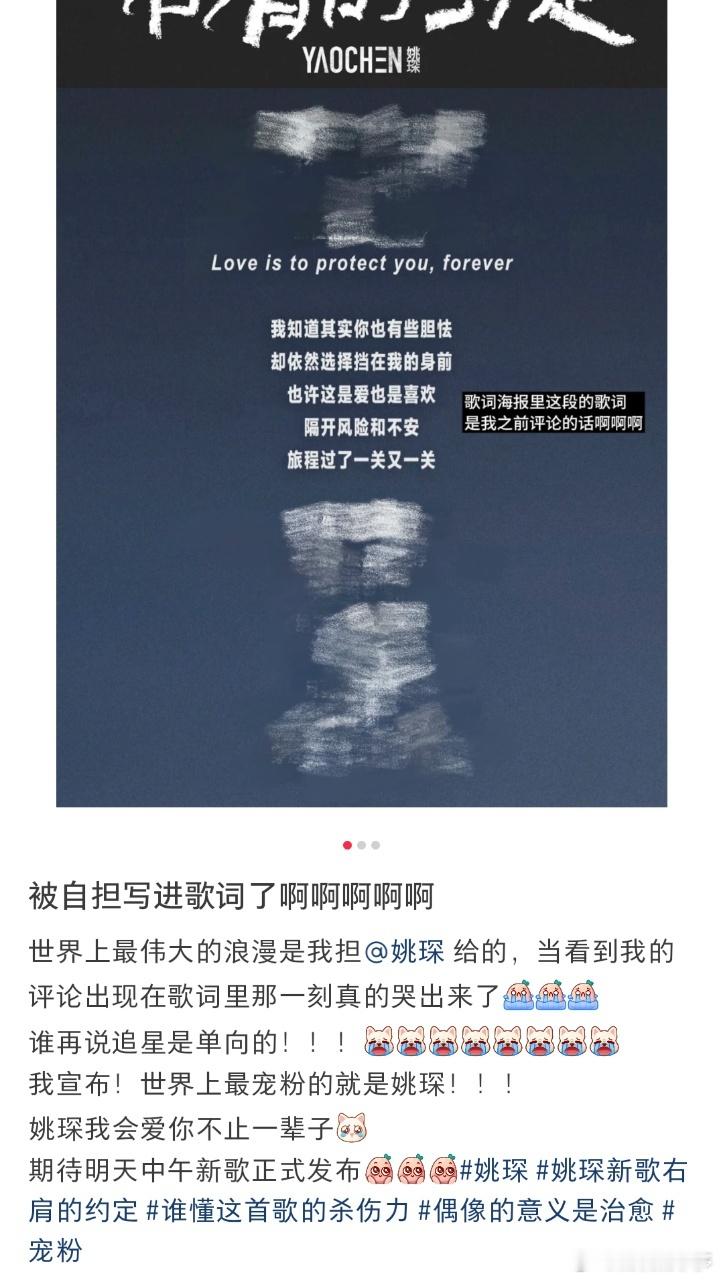 粉丝给姚琛说的话被他写成歌了