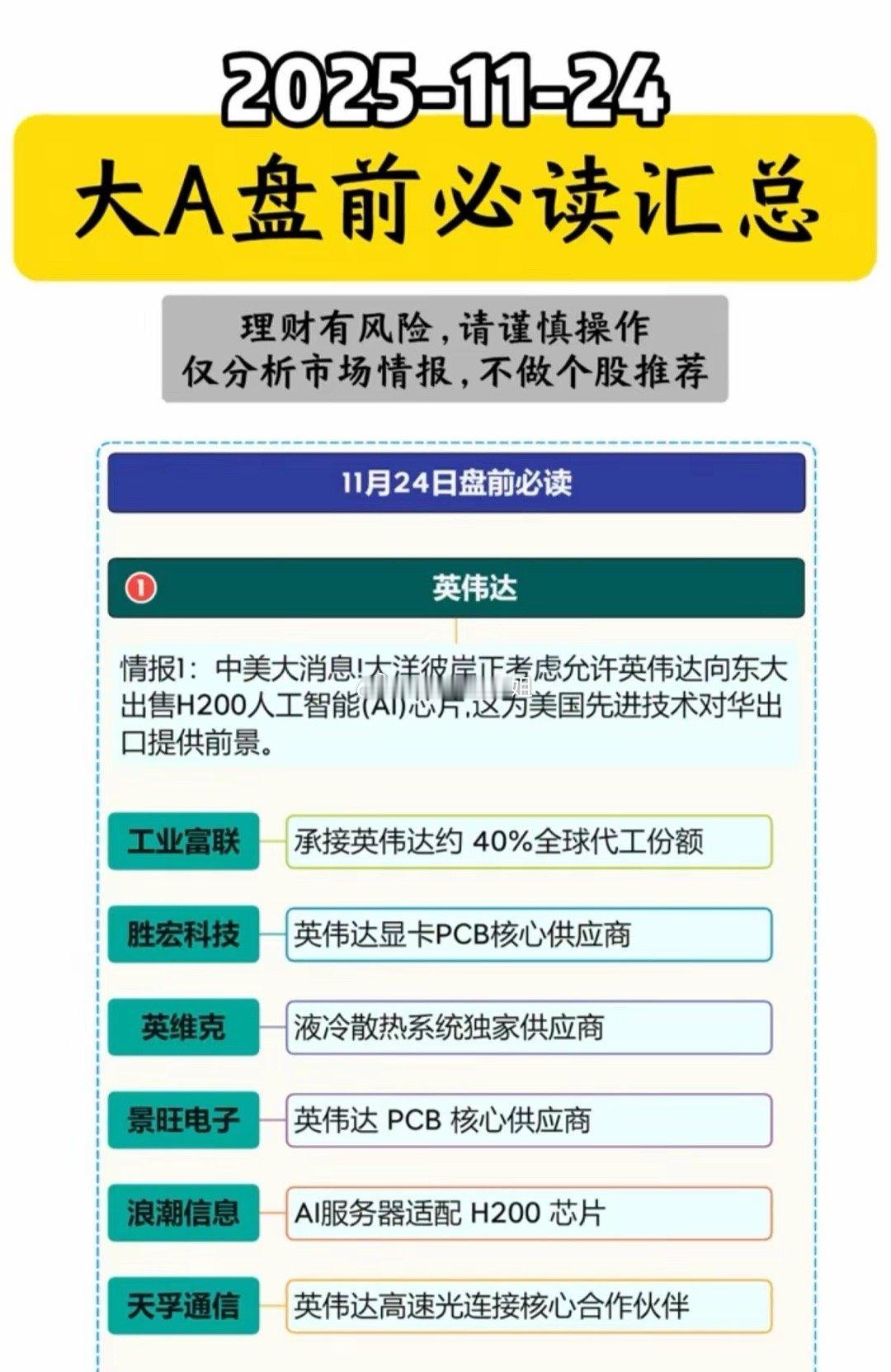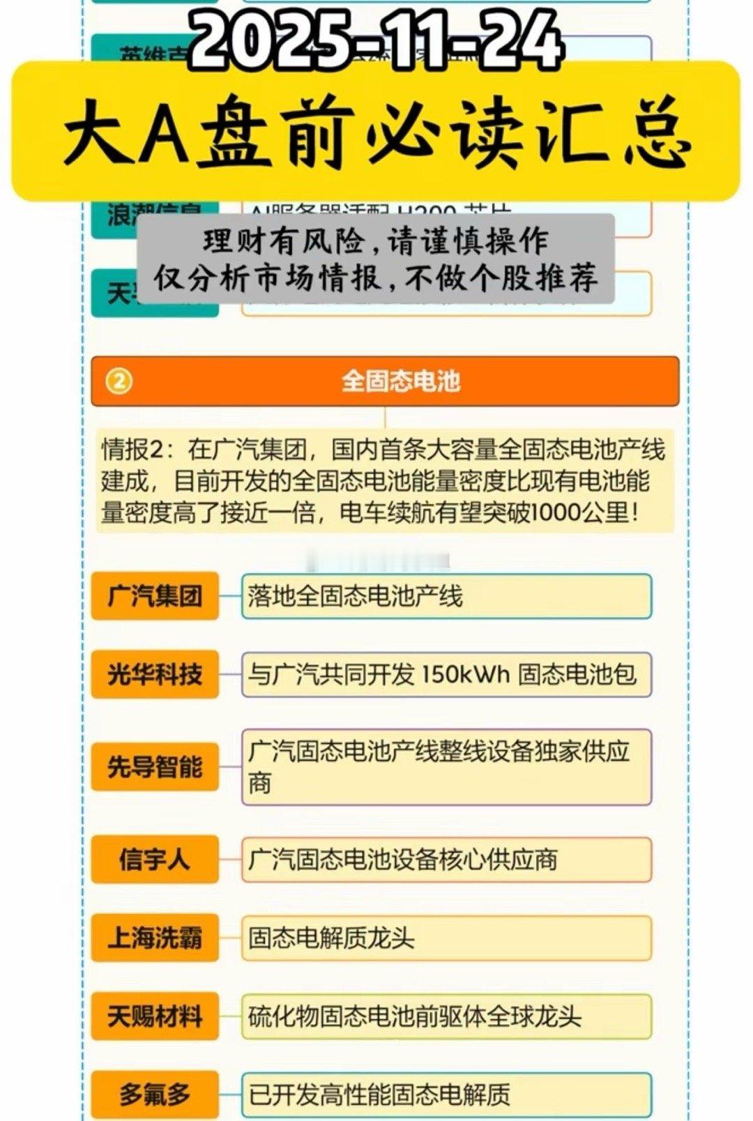 11-24周一 大A盘前 必读汇总!1.英伟达2.全固态电池3.卫星互联网4.
