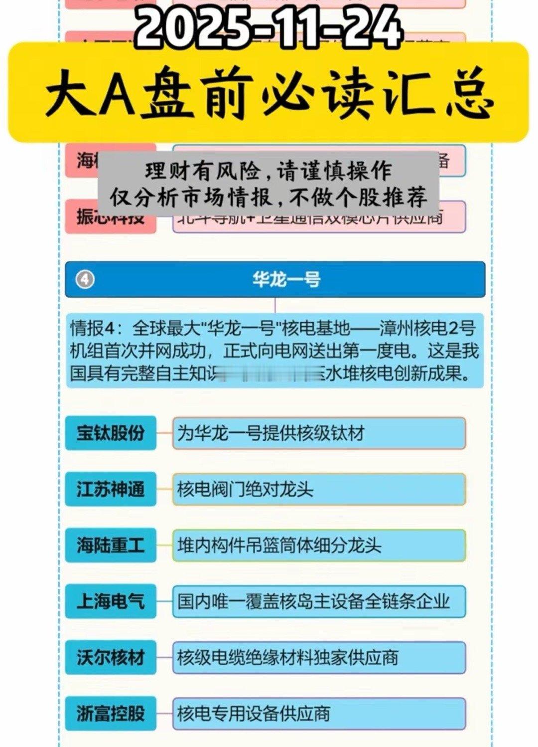 11-24周一 大A盘前 必读汇总!1.英伟达2.全固态电池3.卫星互联网4.华龙一号,核电核能5.科技增量基金