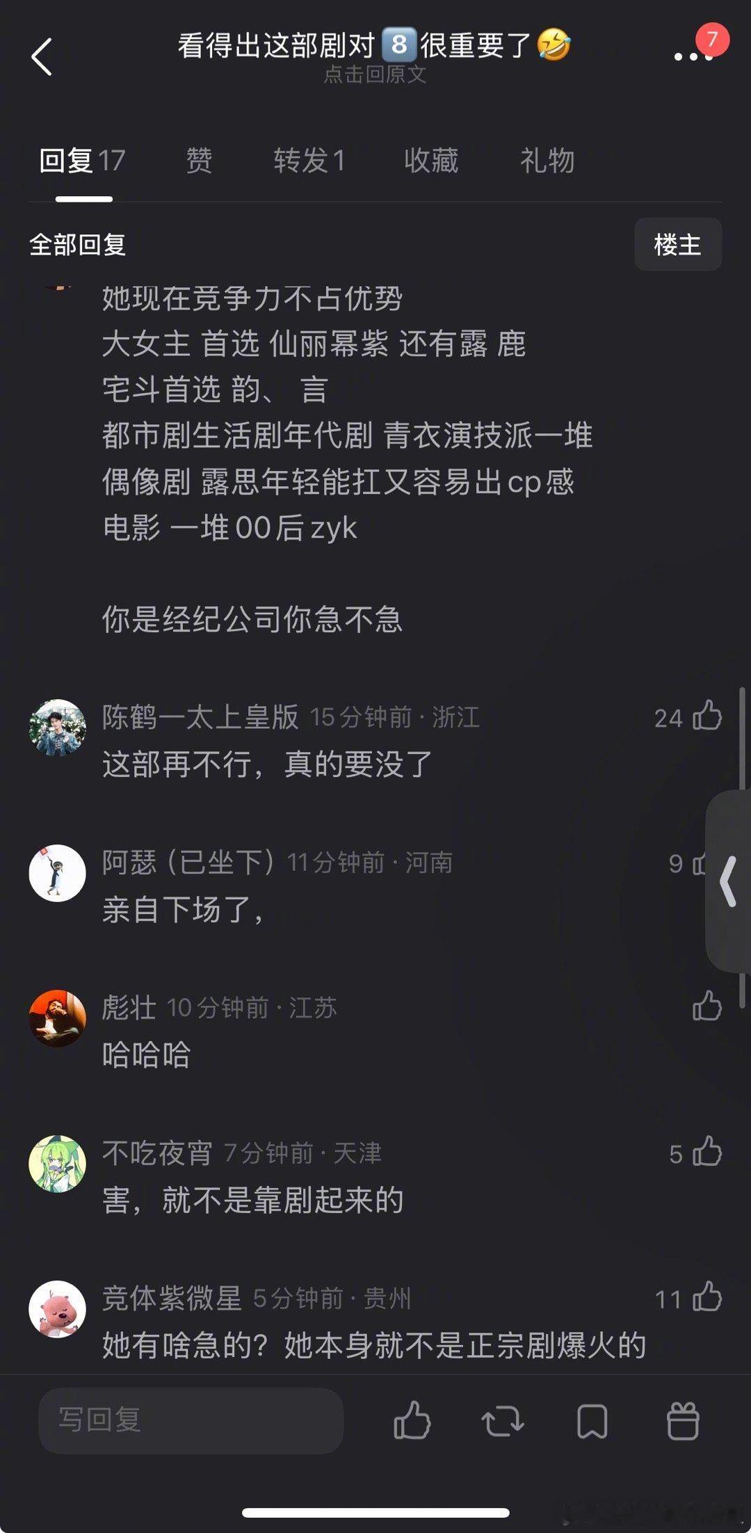 天,迪丽热巴《枭起青壤》豆瓣热评前排,清一色的一星差评……都在吐槽剧情与演技……