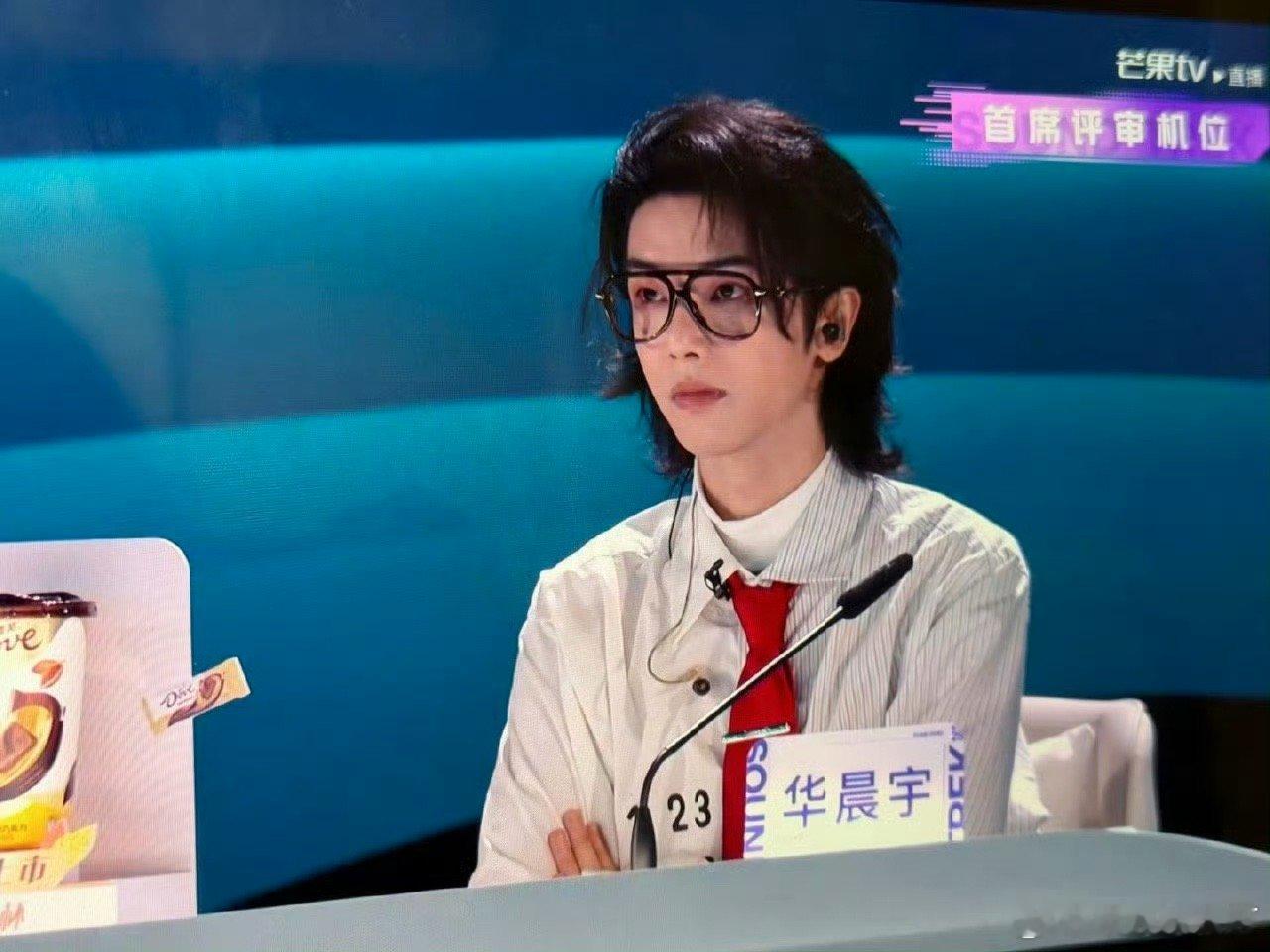 华晨宇新造型又是让人眼前一亮,坐在机位前不怒自威,认真聆听演唱的画面可太权威了!好帅!