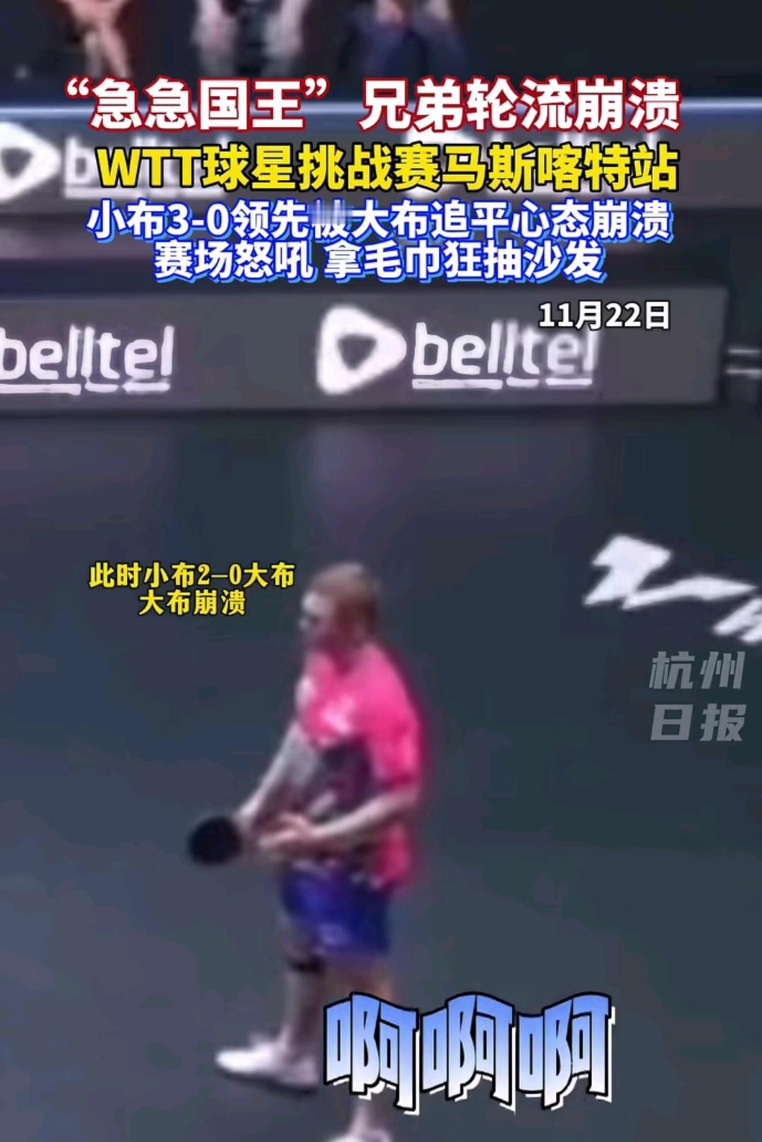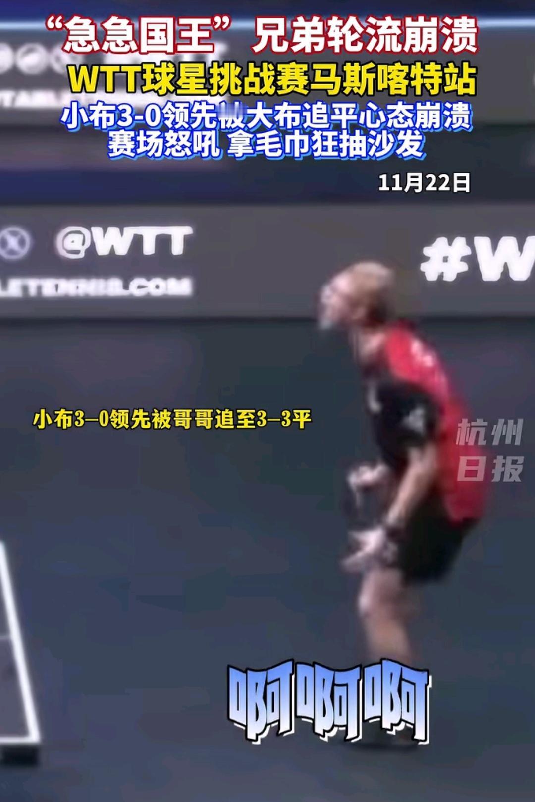 又是被法国勒布伦兄弟笑晕的一天,马斯喀特球星挑战赛男单决赛菲利克斯·勒布伦对阵艾利克斯·勒布伦,11:8、11:8、11:4弟弟菲利克斯·勒布伦先赢三局,哥哥艾利克斯·勒布伦急得哇哇大叫。 11:5、15:13、12:10哥哥艾利克斯·勒布伦又连续扳回三局,这一次轮到弟弟哇哇大叫了,第七局11:6弟弟拿下了决赛局,法国兄弟包揽了马斯喀特站男单冠亚军。