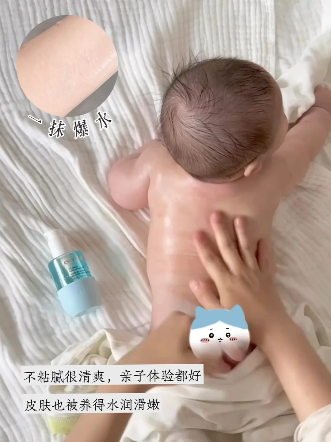 ▪️3.0小蓝抚触油:加入了水精华,升级成了水油同补新形态,延展性更好了✔️,涂抹起来清爽无负担,很适合春夏燥热泛红的宝宝用