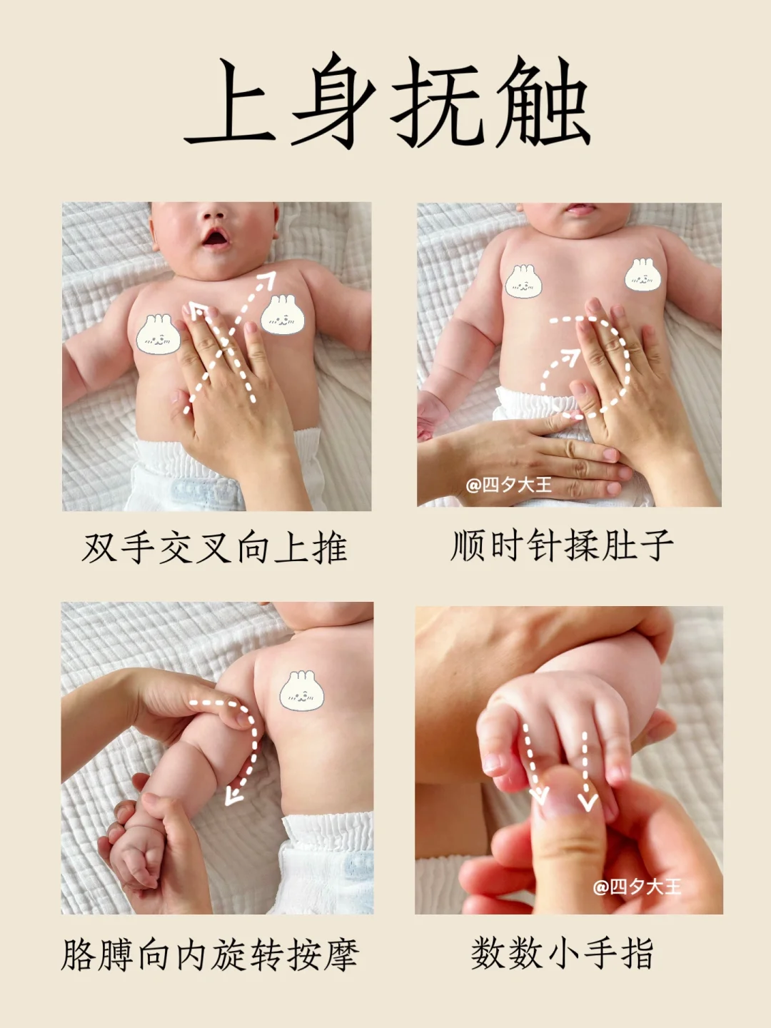 👉最后,抚触是亲子交流的美好时光,妈妈抚触时不要太急躁赶进度,可以放慢速度,一边抚触,一边与宝宝对视交流,这样宝宝能得到极大的满足哦!