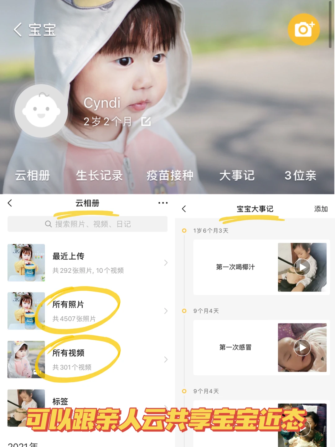 每天在小群里跟集美们诉苦取经,姐姐说你要了解孩子的需求,知道她哭她闹是因为什么,摸清楚孩子的脾性!你不是🈶️亲宝宝APP吗?那个不是光让你存图片的,不懂的你可以去上面查一下……我这才想起来,之前天天给孩子拍照拍视频,手机📱内存不够,姐姐说这个可以无限量存图片,而且画质比较清晰,全家都可以云共享,即使分隔两地,家人也不会错过孩子的第一次走路、说话等重要时刻!不过刚开始我只是用它存照片,虽然有看到它🈶️很多育儿方面的东西但是都没好好研究。