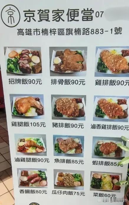 从快餐、咖啡价格情况看台湾物价 这两张图片是便当店和咖啡店的价格表: 排骨饭:90元新台币,折合人民币约20元。 鸡排饭:90元新台币,折合人民币约20元。 鸡腿饭:105元新台币,折合人民币约23元。 卡布奇诺(中杯):70元新台币,折合人民币约15.5元。 燕麦拿铁(中杯):75元新台币,折合人民币16.6元。 美式黑咖啡(中杯):50元新台币 折合人民币11元。 从以上人们日常经常吃喝的两种食品对比,台湾的价格跟大陆差不多,某些食品稍稍高于大陆,也有一些稍稍低于大陆。 对此,大家有何看法?欢迎评论区留言!台湾物价