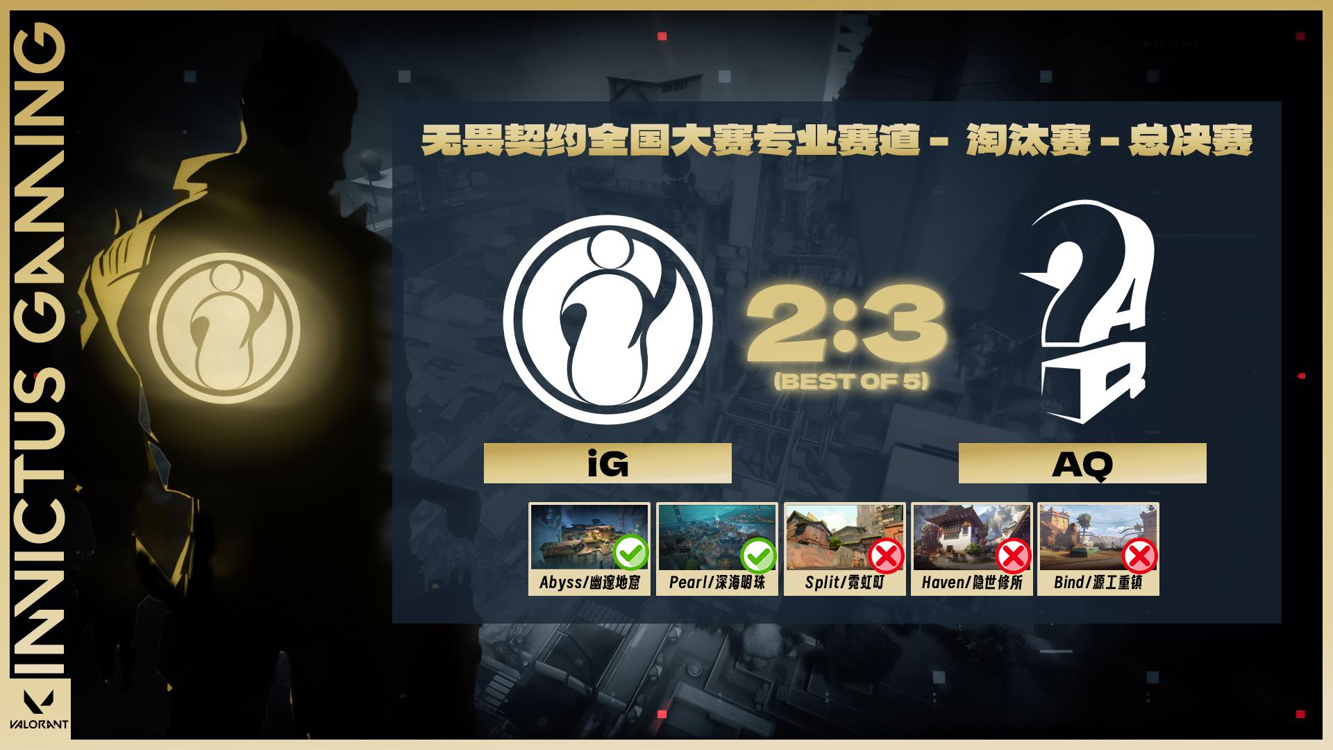虎扑11月24日讯第五届无畏契约全国大赛专业赛道iG以2-3的比分不敌AQ,赛后iG发文: