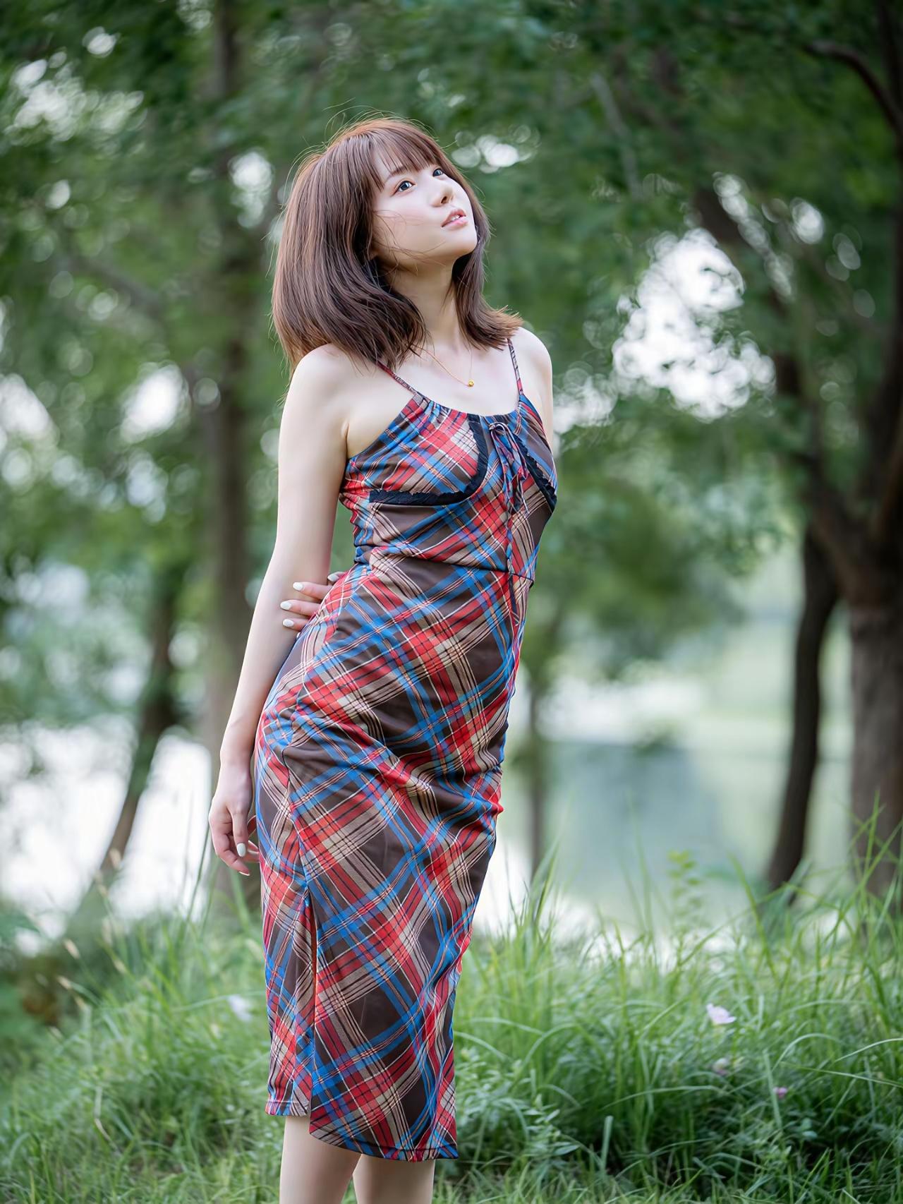 夏日清新,绿意盎然,青春美女漫步在树荫下,裙摆随风飘扬。公园时尚少女 微胖滴女生好看还是苗条好看? 美女人像群 高清美女