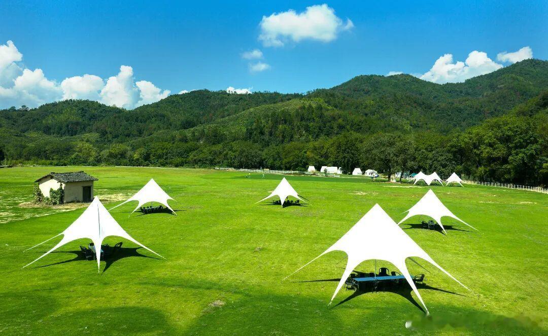 不用去新疆莲都也有阿勒泰!秋光正好,风里已带了几分清爽的凉意,是时候暂别城市,走进山野,寻找一处能安放闲情逸致的目的地。联城街道竹道村,这个藏在山坳里的小村庄,正以其独特的山野风情,成为今秋近郊游的热门选择。从市区出发,不到半小时车程,就来到了位于联城街道竹道村的绿野仙踪ATV户外营地。刚进营地,最先撞入眼帘的,是一片足足 200亩的“治愈系”大草坪。脚踩上去,松软得像陷进了晒过太阳的厚地毯,阳光透过树叶洒下斑驳的光影,风里带着青草和泥土的清香。大人们或围坐在天幕下,或支起帐篷,分享着零食、聊着家常,满是秋日的惬意。