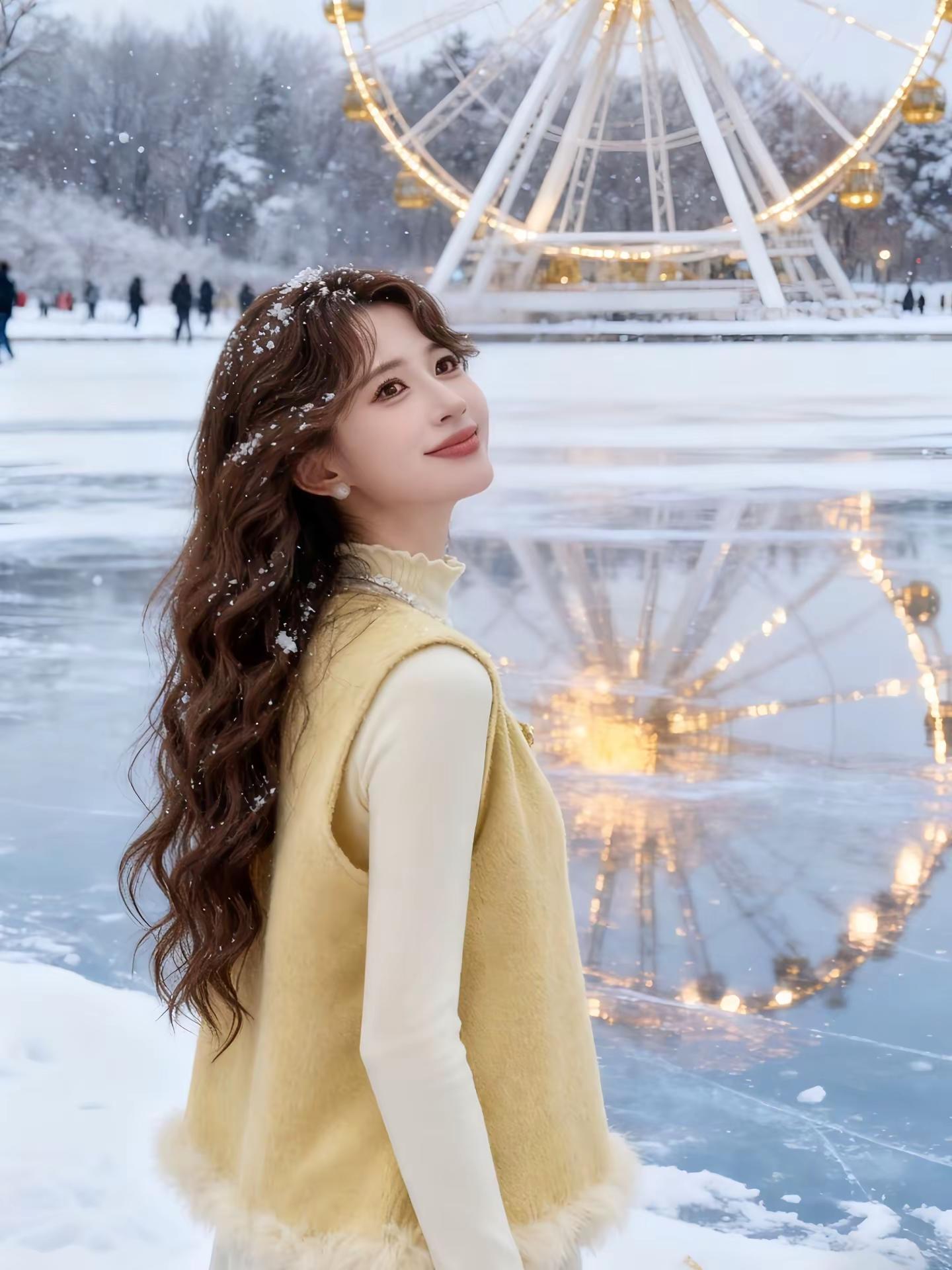 奶黄叠穿配长裙太温柔!落雪天里的冬日甜妹,氛围直接拉满~优雅气质 名媛气质 甜美风 这也太好看了 女生拍照姿势