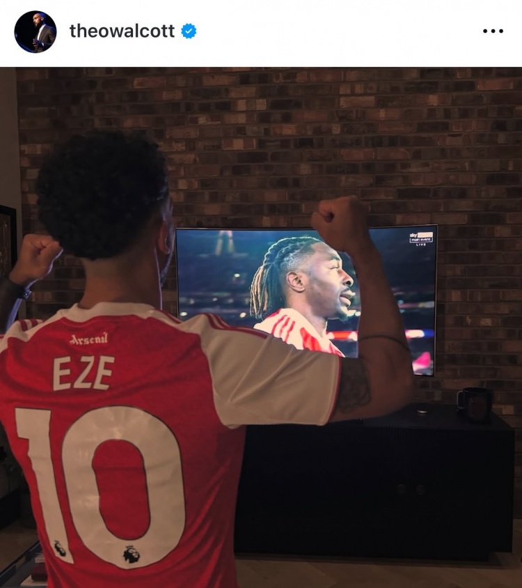 在社交媒体上,沃尔科特晒出看球照并写道:好一个帽子戏法!热烈祝贺埃泽在北伦敦德比中的精彩表现。