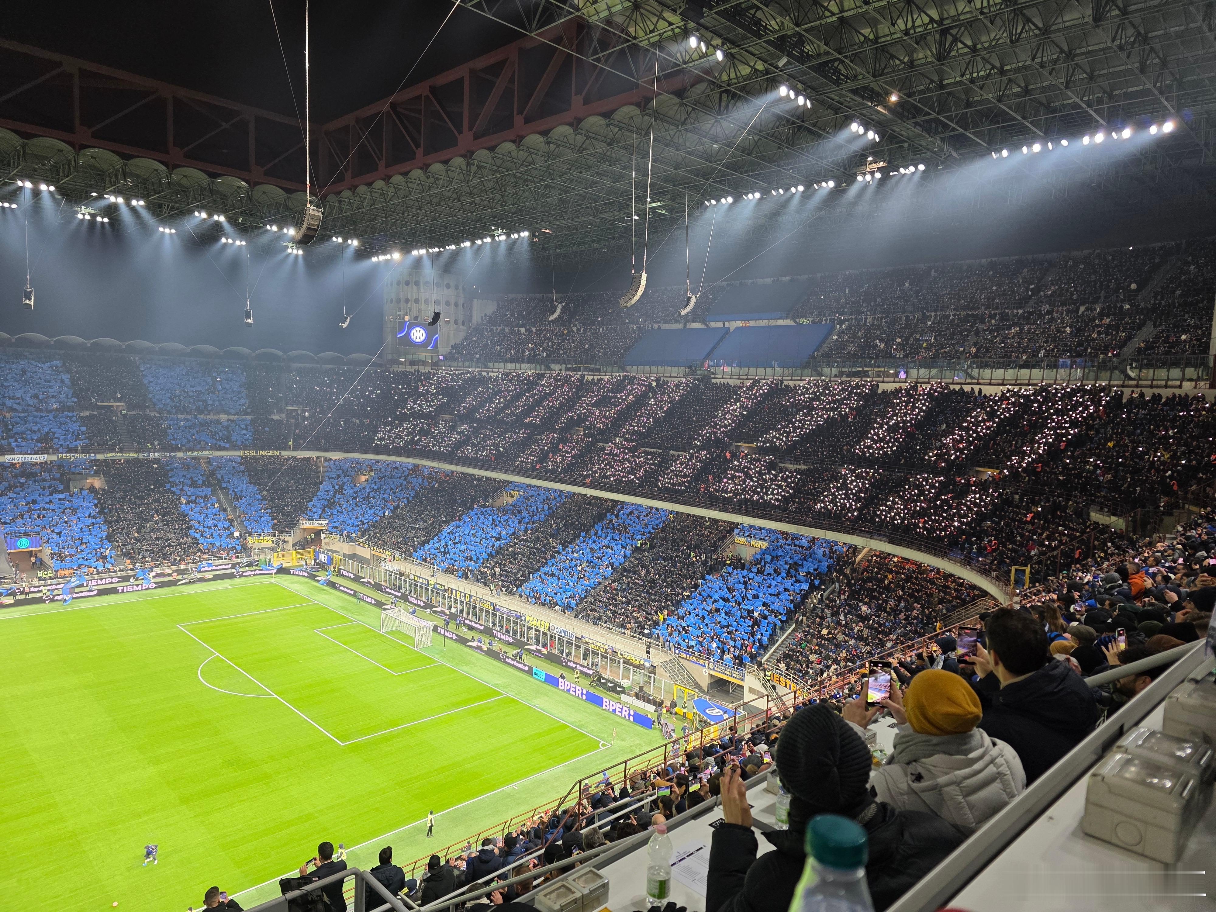 历史第一场米兰双雄共同拥有圣西罗所有权的德比,没有传统的tifo,南看台甚至用灯