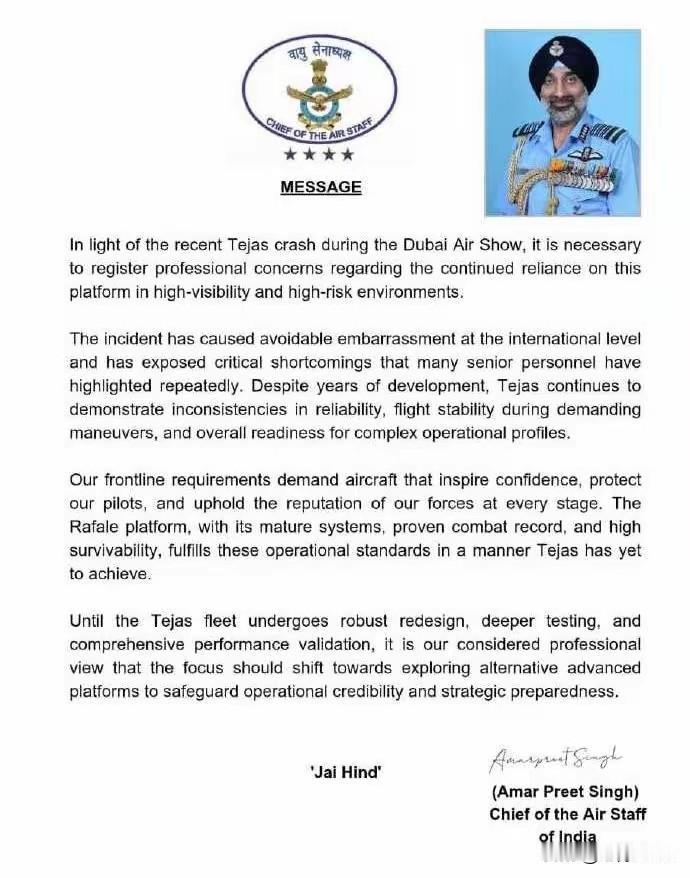 1. 印度空军参谋长抨击“光辉”战机性能差 建议外购:印度空军参谋长辛格发公开信批评“光辉”太垃圾,建议外购。“光辉”1983启动,40年得40架Mk1,性能差;政府强压空军采购180架Mk1A,总138亿美元,单价7600万,比苏-30MKI、F-35A还高。辛格指出其可靠性、稳定性、妥善率差,连二线训练都不行。辛格与莫迪政府矛盾深,可能下台或冻结部分订单。