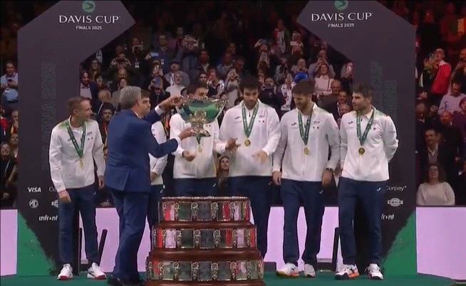 直播吧11月24日讯在辛纳、穆塞蒂两位世界前10选手缺阵的情况下,意大利队依旧完成了网球戴维斯杯三连冠的壮举。