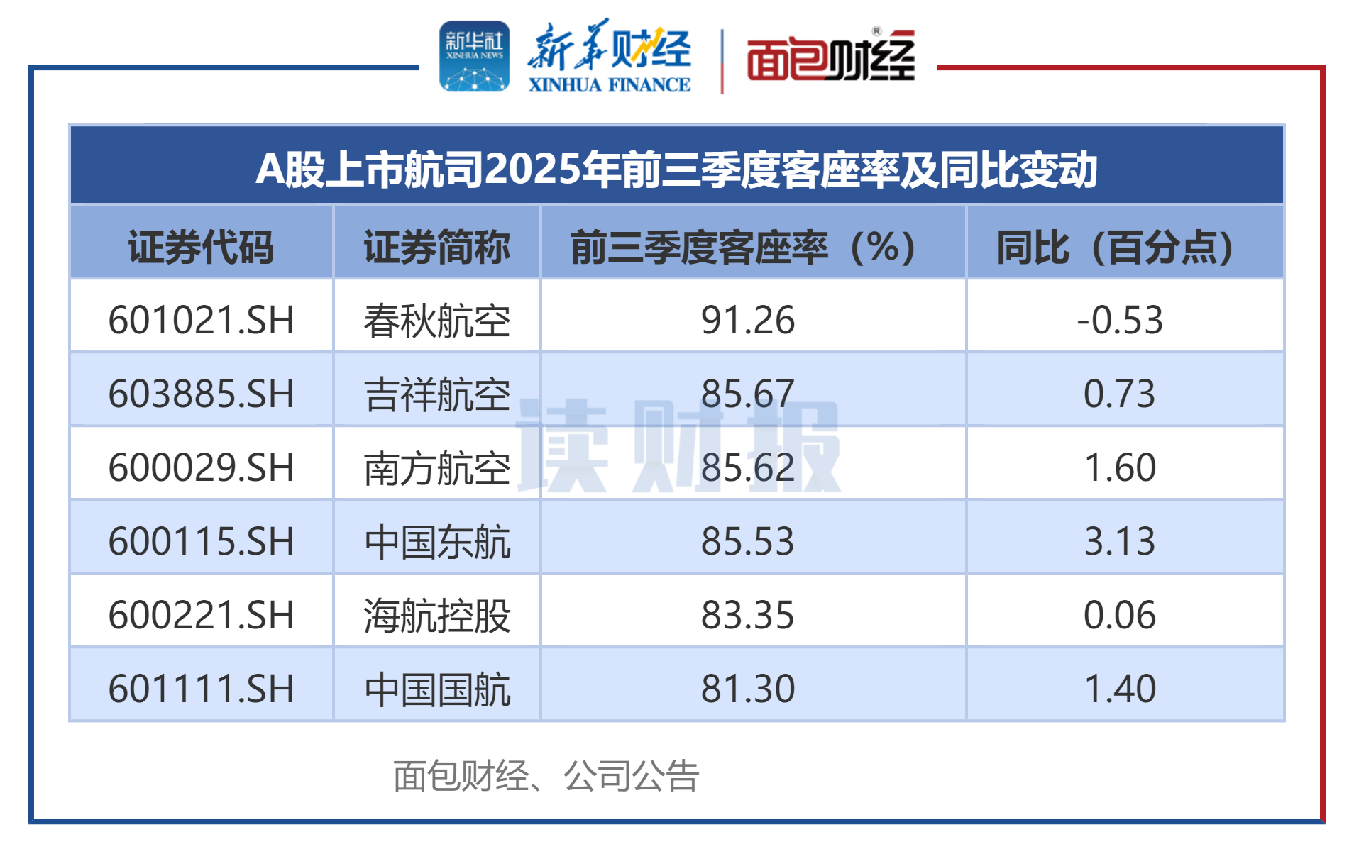 A股7家上市航空公司2025年三季报均已披露完毕。