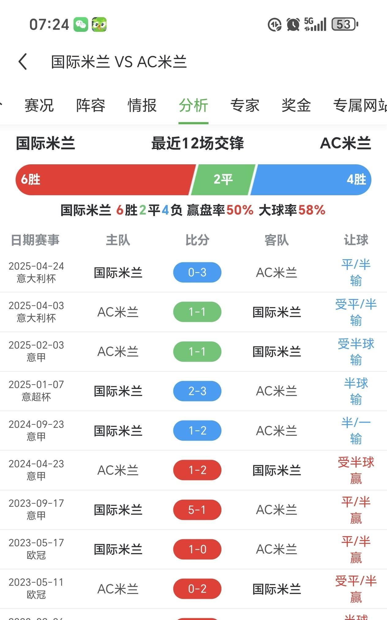 时也命也!在意甲第十二轮比赛中,国际米兰0:1负于AC米兰,目前已经米兰德比6场