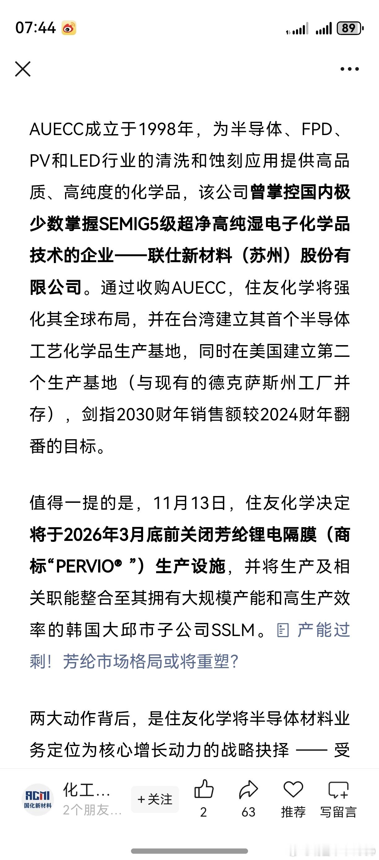 刚刚朋友发给我的消息。有意思的是,关联方涉及到一家A股公司。新材料,个人置顶微博上已经提及。如化学品光刻胶之类,可作个参考。