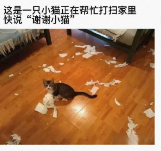 这是一只小猫正在帮忙打扫家里,快说“谢谢小猫