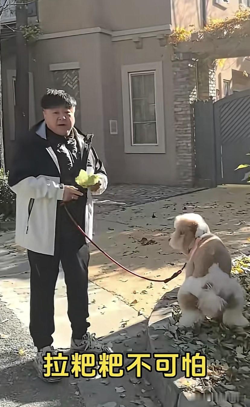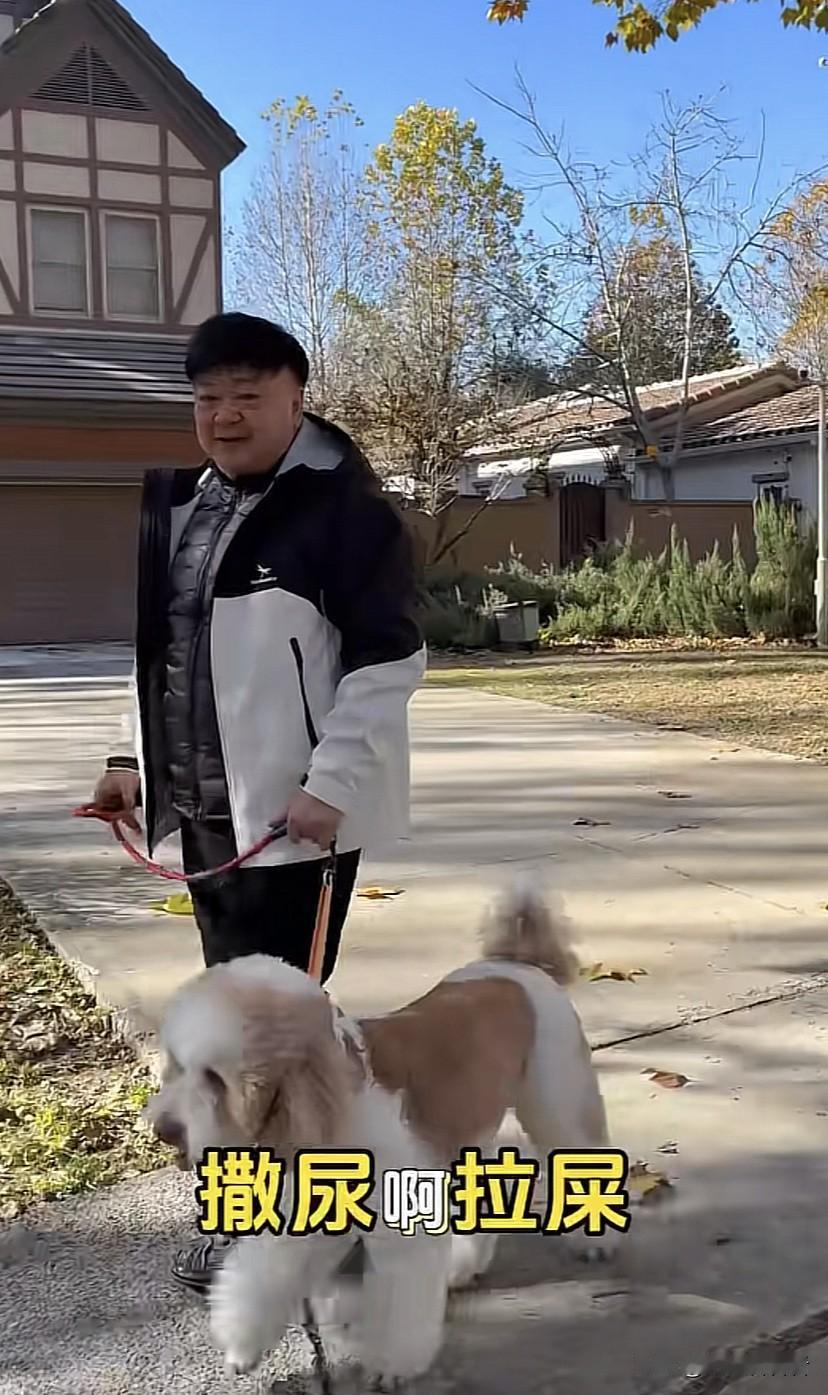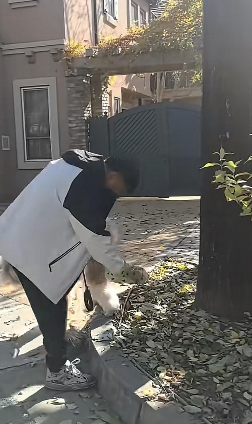 洪剑涛洪班长在自己家小区遛狗,看起来是一个很老的别墅区,房子像八九十年代的建筑,有小平房,也有两层小楼。 洪班长不拍戏没什么事的时候,就带着狗狗大顺出来散步,顺手带着清理粪便的塑料袋,随时准备做铲屎官。 洪班长的这只狗狗叫大顺,六六大顺的意思,毛茸茸的很漂亮,有人跟洪班长说话,它还站起来,和个小孩似的,很招人喜欢。