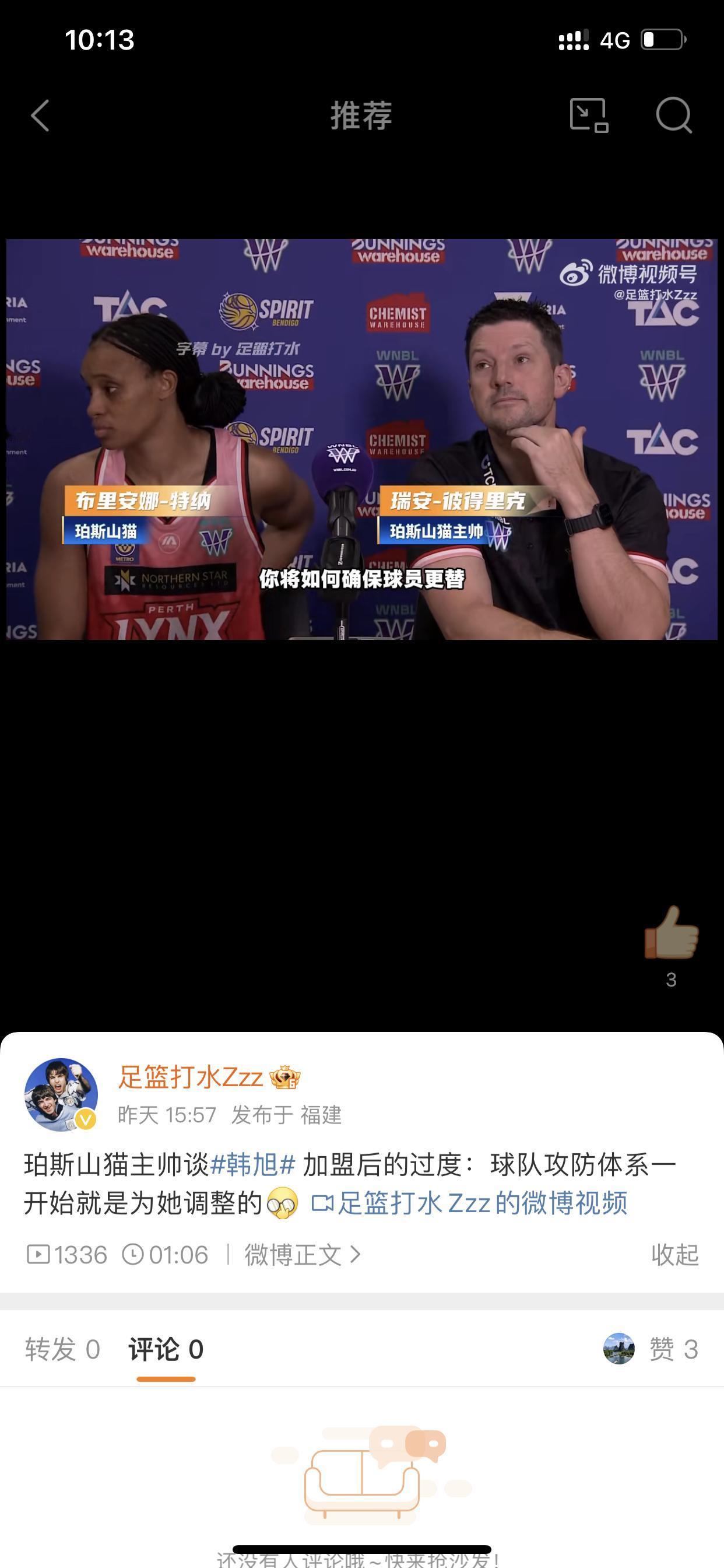 珀斯山猫队很看重韩旭,为此签了一个短期的WNBA外援 叫做布里安娜·特纳(主帅昨天接受采访表示,很期待韩旭到队之后的表现) 根据山猫队的主帅所言,签约这个外援,因为韩旭要打全运会,所以用她来顶替一段时间 再一个,主帅还说当一确定和韩旭签约之后,他就让全队进行调整,即一直都在寻找怎么快速的与韩旭融合,以便韩旭一到队,就能更快的与她们队伍在最短的时间里形成有威慑力的战术体系 由此可见,山猫队对韩旭的重视程度还是很可以的。 希望这是一好的开始,祝愿韩旭在新的联赛里打出自己的实力和风采!