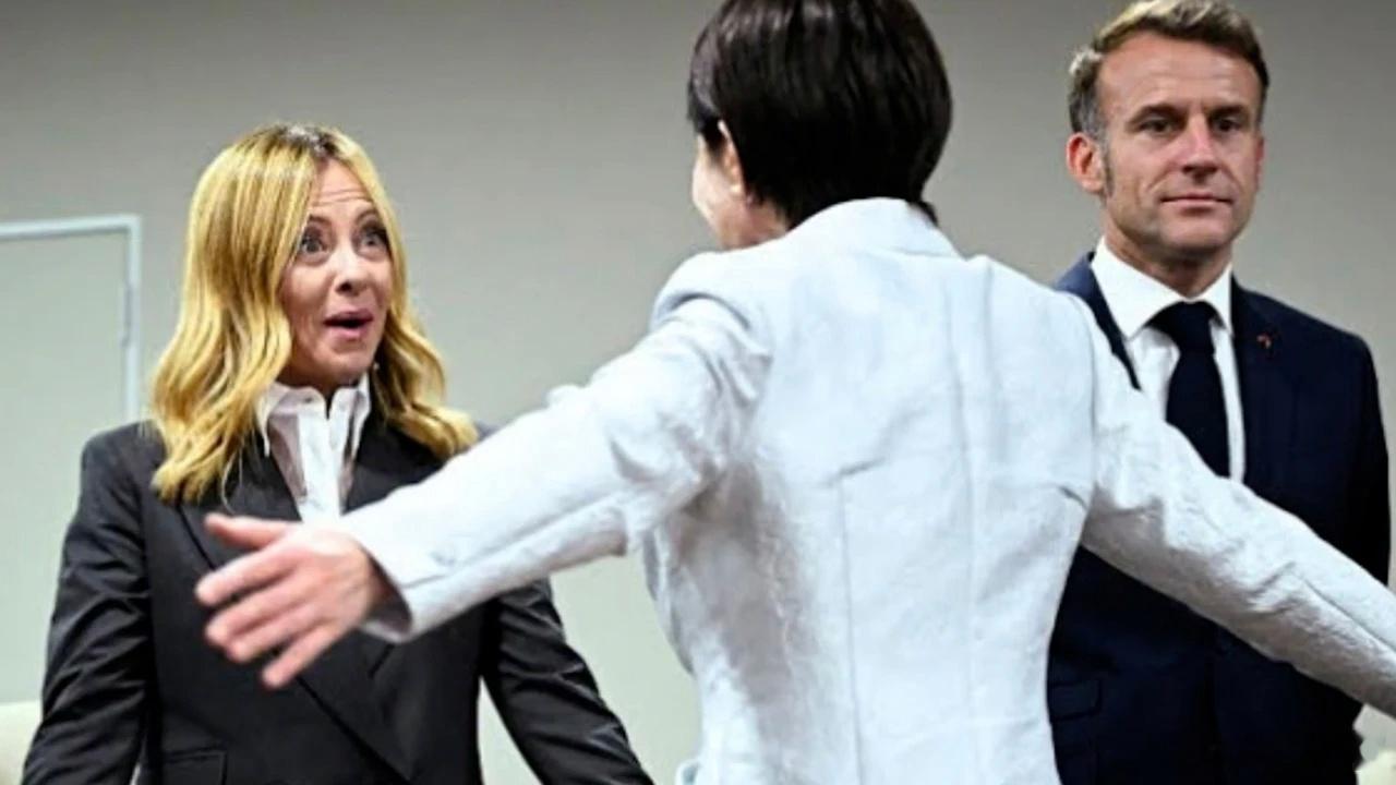 太尴尬了,法国总统马克龙和意大利总理梅洛尼在G20峰会期间打招呼,可见法国总统马