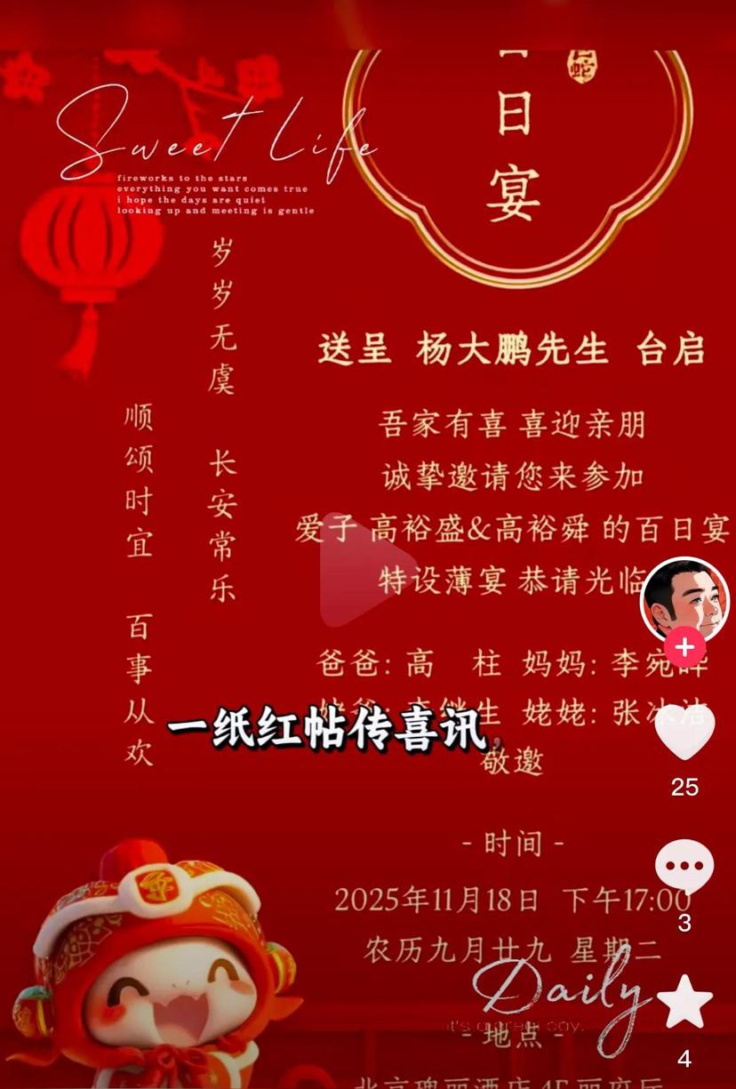 京城两位双胞胎小少爷百日宴妈妈最耀眼,出生及人生赢家 双胞胎妈妈身材高挑,年轻貌美,百日宴布局高端,双龙戏珠对应两个高家少爷,预示着他们自命不凡,确实是不同凡响,他们老子身价百亿,家大业大,高家的两位小少爷就是来享福的。 双胞胎妈妈妙龄少女,年芳二十有余,为高家又生了双胞胎少爷,家庭地位提高,阔太太的日子不是一般人能比的。 双胞胎他爹也是人生赢家,家庭事业双丰收。