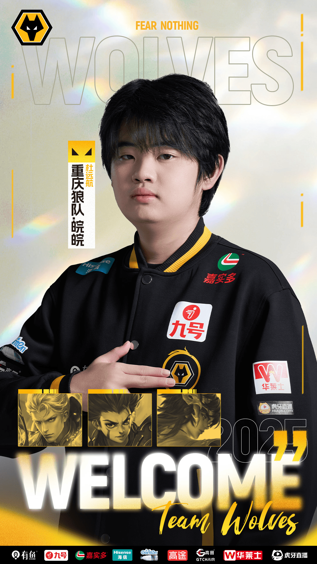 即日起,原佛山DRG打野选手皖皖(杜远航)现正式加入重庆狼队,今后将随队征战接下来的职业赛事。