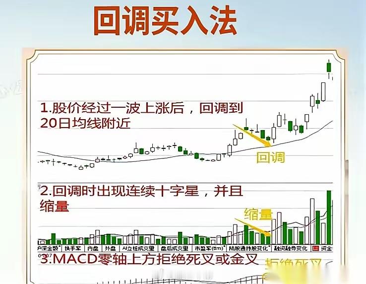 股价涨了一大波,你没上车,心里直骂娘。好不容易盼着它回调了,你又怂了,生怕是主力给你挖的坑。两头挨打,说的就是你吧?告诉你个秘密,抄底不是瞎抄的,得看它“刹车”的姿势优不优雅。一辆疯跑的车(上涨的股价),想让它停下来,不能急刹,得点刹。它咣咣往下跌,跌到20日线那附近,就像车靠到了护栏上。这是第一个点。你看它靠上护栏的时候,动静大不大?如果成交量小得可怜,K线图上连续几天都是小十字星,开盘价收盘价都差不多。这说明啥?说明想卖的都卖光了,没人砸盘了,油箱里没油了。这是“缩量”,是刹车踩稳的信号。这时候,再低头看一眼MACD那个指标。只要它还在零轴这条“水平面”之上,本来快要死叉了,结果下面的线一勾头,又分开了,拒绝交叉。这叫什么?这叫“假动作”!是假摔!主力在骗恐慌的韭菜下车呢。这三个信号——靠上护栏(20日线)、刹车动静小(缩量十字星)、司机还给你使眼色(MACD拒绝死叉),凑一块儿了。你还等啥?这时候上车,不说100%吧,但至少你不是在高速上闭着眼瞎跑。记住,炒股炒的不是代码,是人性,是概率。别总想着买在最低点,那是神干的事。我们凡人,能买在一个相对安全、大概率要涨的点,就谢天谢地了。